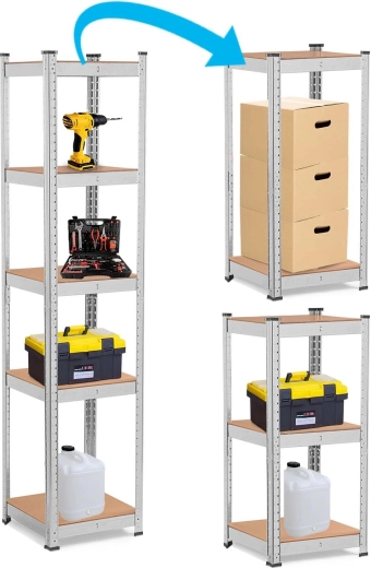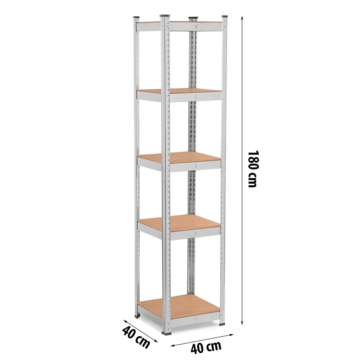 Den alsidige og stabile metalreol HUMBERG med målene 180 × 40 × 40 cm tilbyder 5 solide MDF-hylder, justerbar hyldehøjde i trin på 40 mm og en samlet bæreevne på op til 500 kg. Perfekt til garage, kælder, arkiv og værksted. Takket være skrueløst samlesystem kan den hurtigt sættes sammen, afrundede kanter øger sikkerheden, og plastfødder beskytter gulvet.
