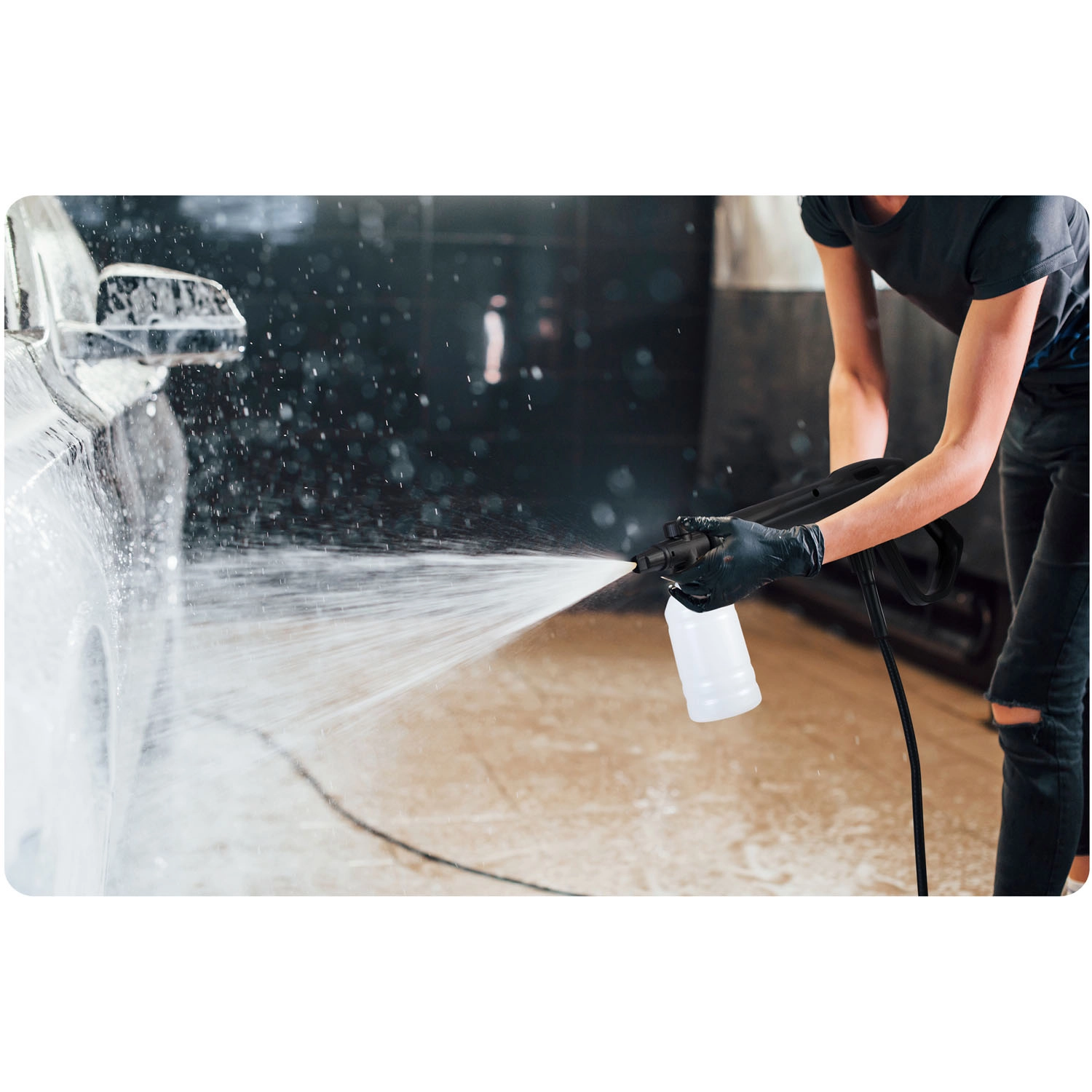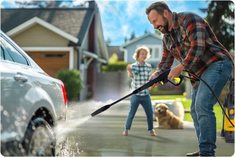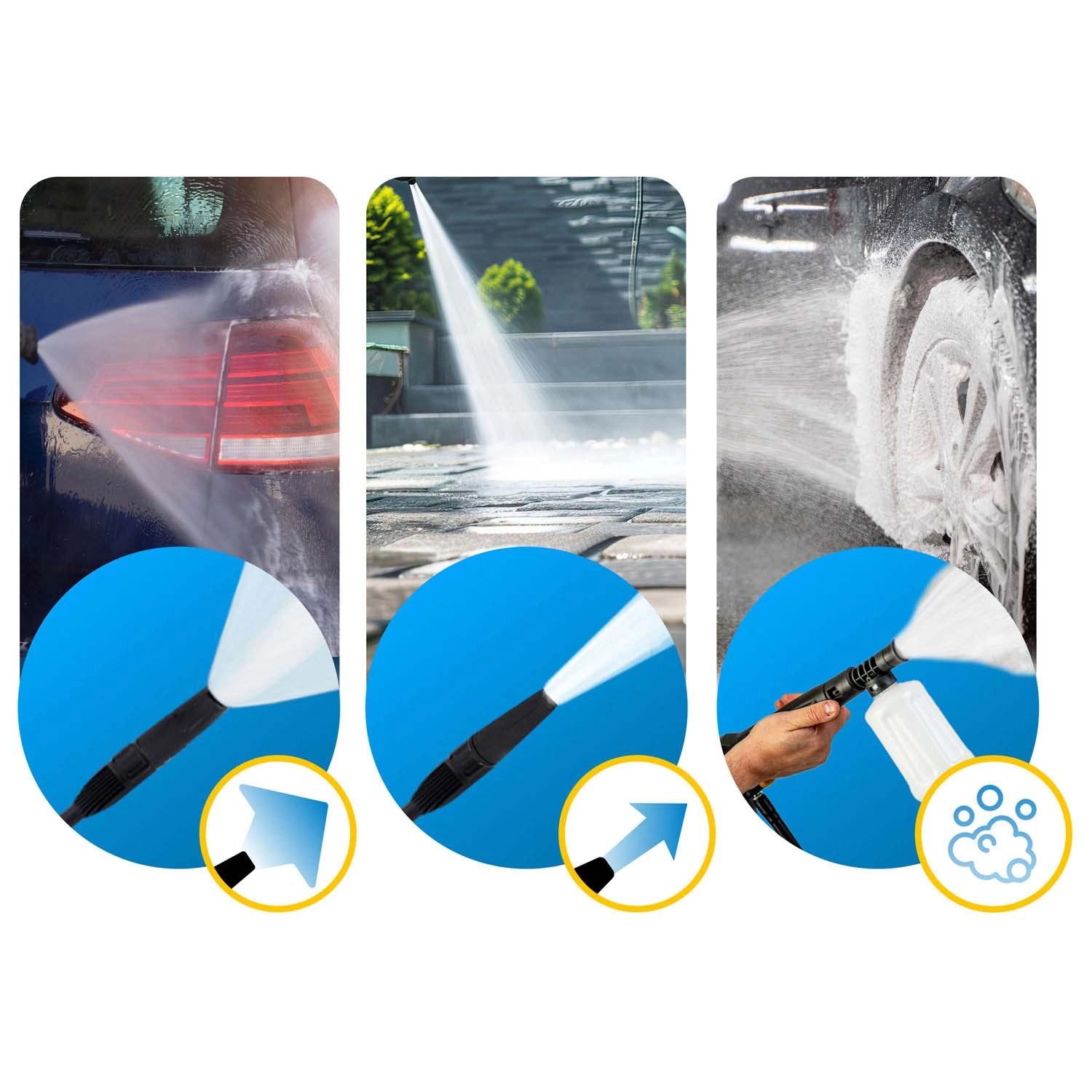 Skift til turbodyse for en koncentreret stråle til det mest genstridige snavs, eller brug trinløs justering af vifte-strålen til skånsom vask af karrosseri og ruder.