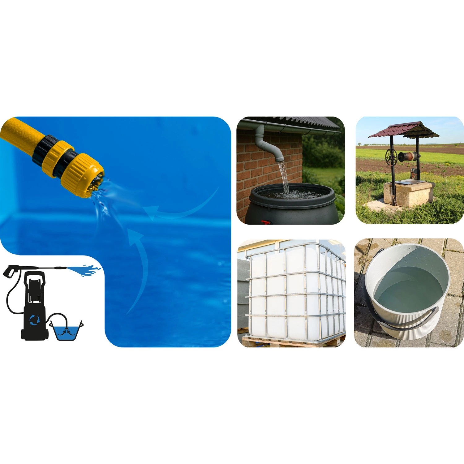 Mangler du en hane i nærheden? Intet problem. Integreret selvansugning gør det muligt at pumpe vand fra tanke, tønder eller IBC-containere. Pumpehuset i aluminium sikrer lang levetid og stabil ydelse.