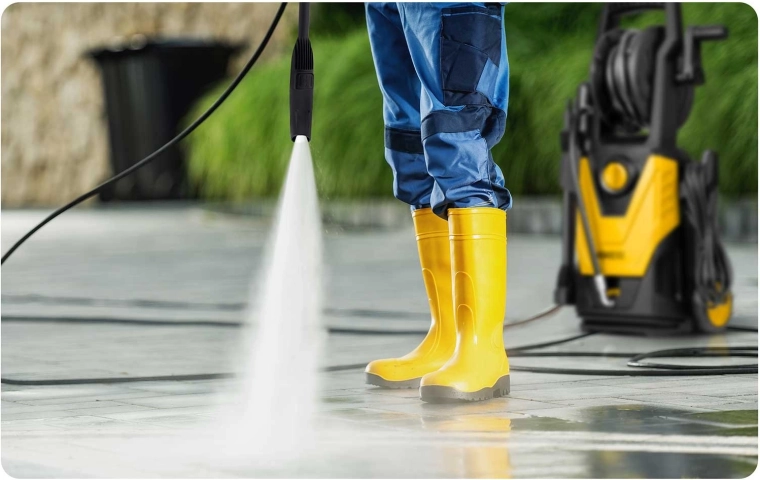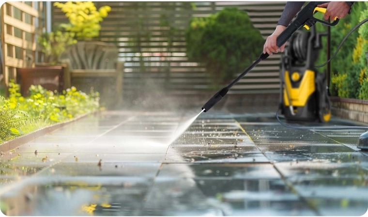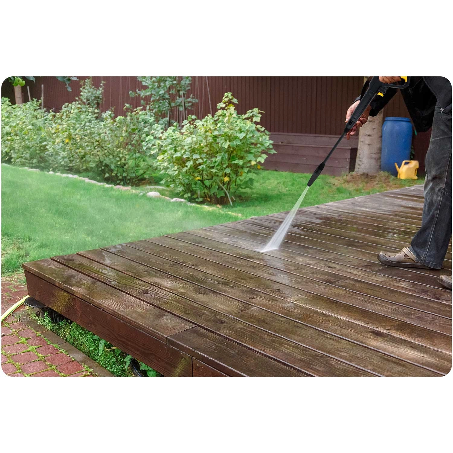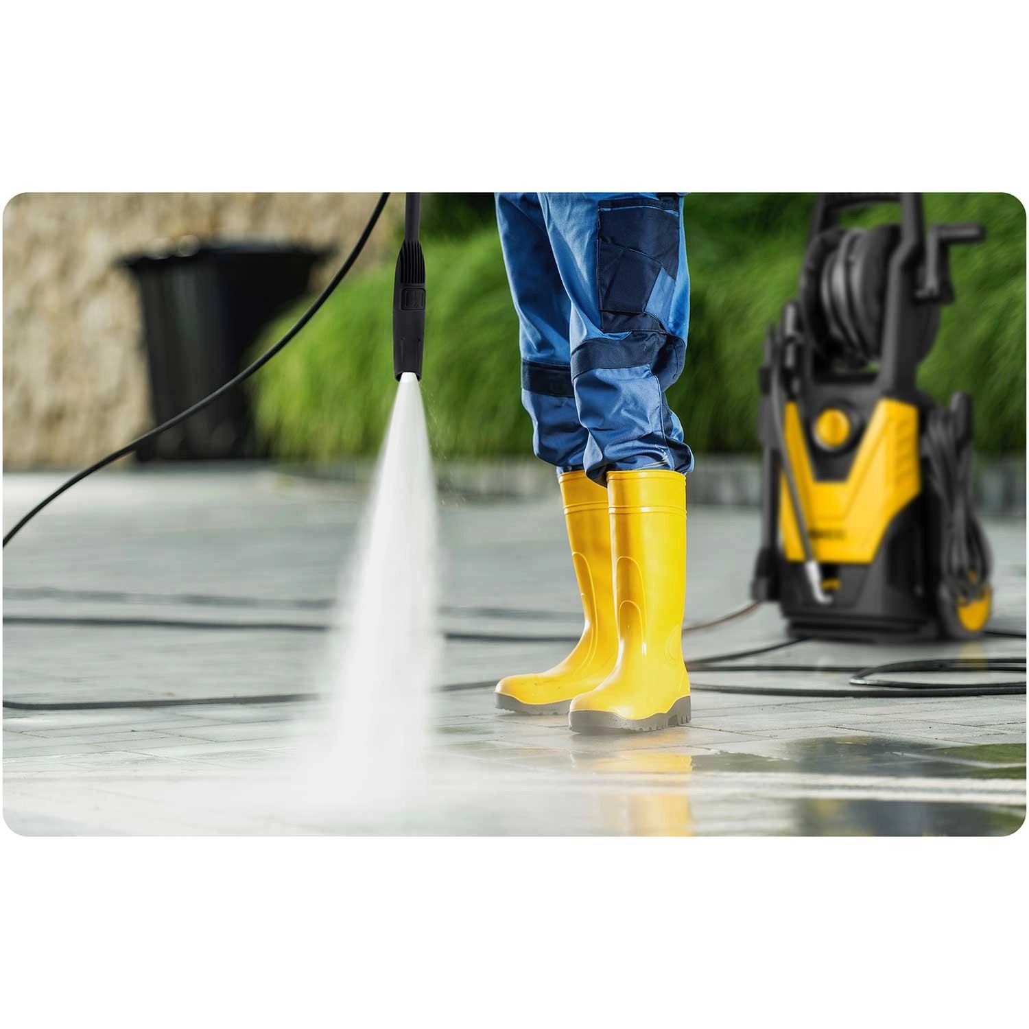 En koncentreret højtrykstråle løsner hurtigt fedt, mudder og mos på belægning. Ideel til krævende rengøring af terrasser, gangstier og køretøjers undervogn.