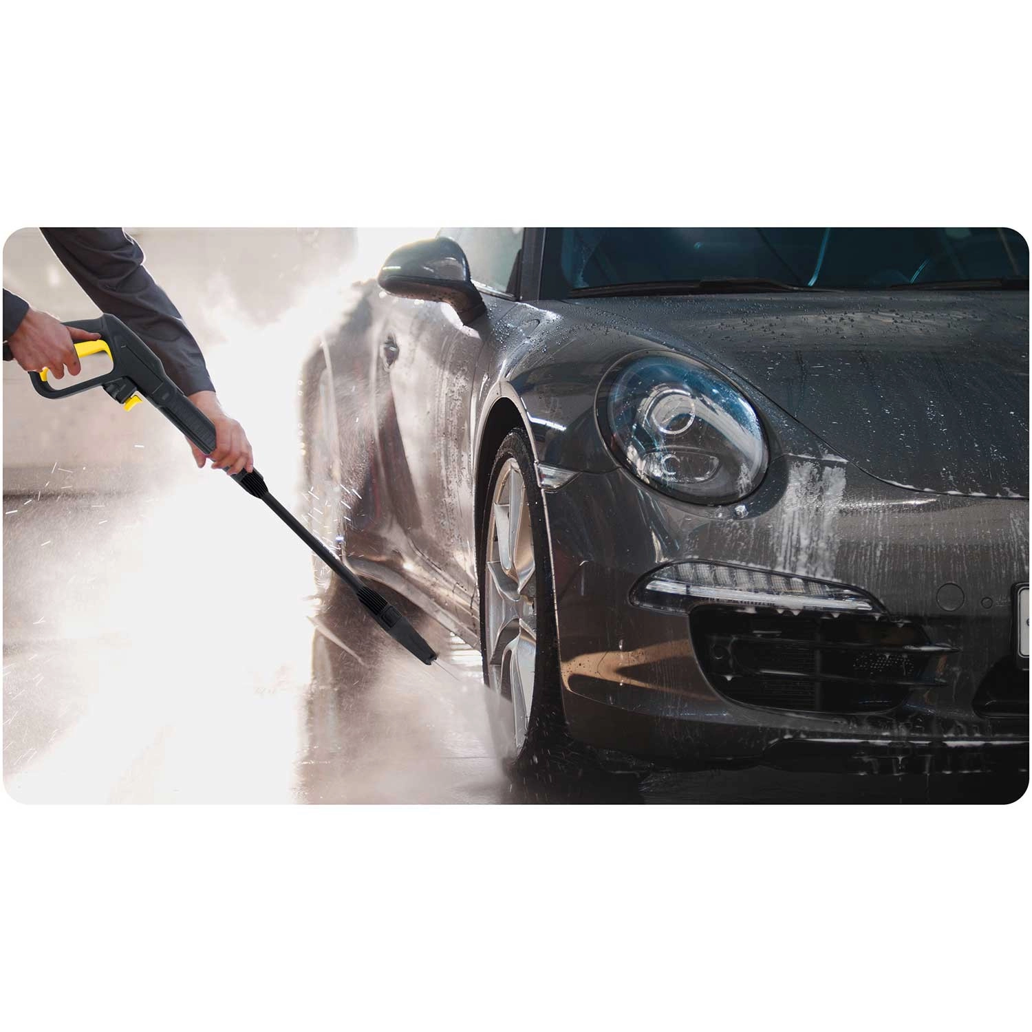 For sikrere og mere økonomisk arbejde er der StopAndSafe™ – automatisk aflastning og afspærring af aftrækkeren sparer vand og energi og beskytter pumpen mod overophedning. Den tilsluttelige 450 ml skumflaske med doseringsregulering gør det nemt at vaske biler og motorcykler. Medfølger gør også et vandfilter, der forhindrer, at snavs trænger ind i pumpen og dyserne.