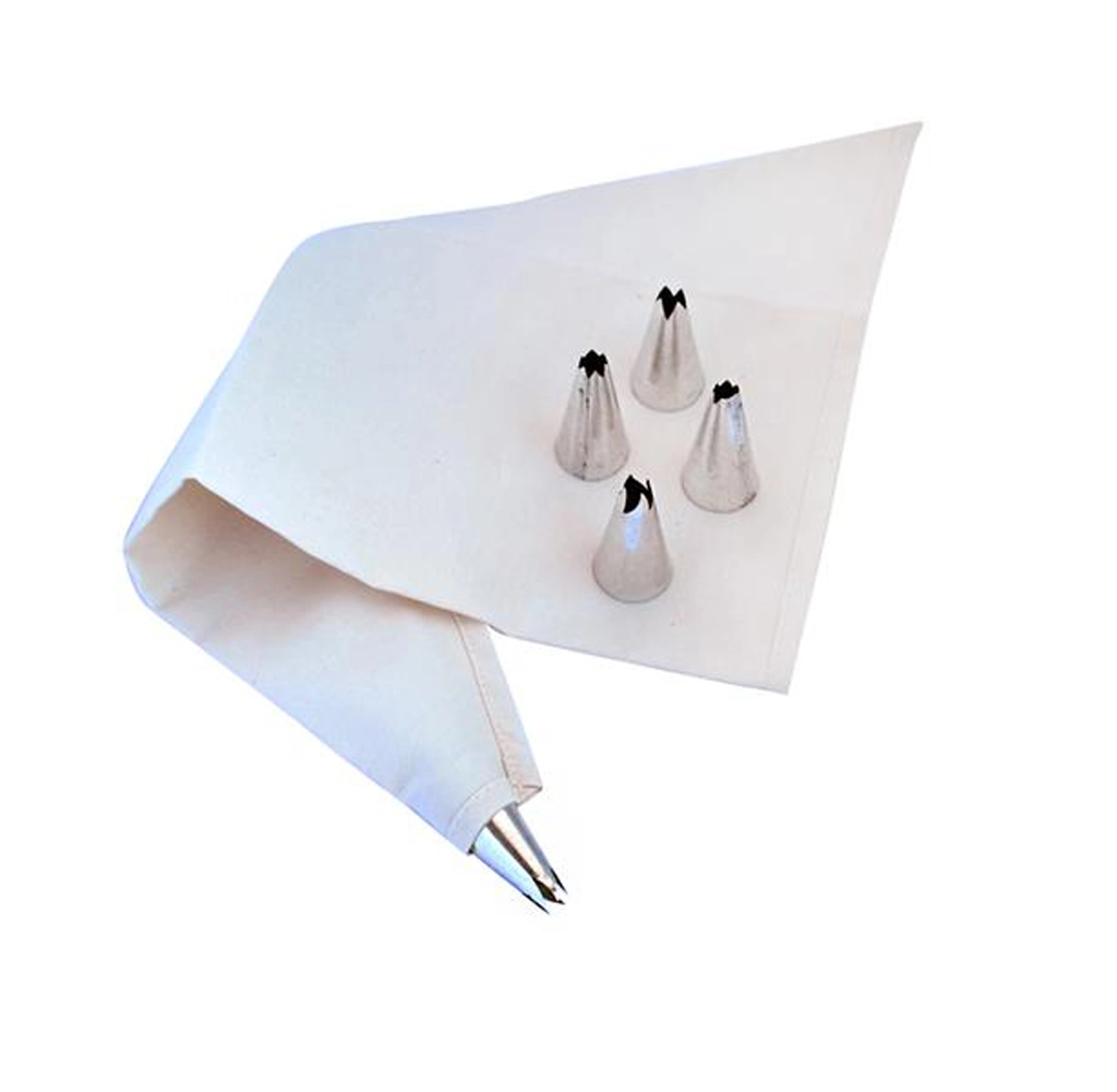 Dette alsidige sæt er ideelt til pyntning med creme, flødeskum og glasur. Den bomuldspose giver et behageligt greb, er holdbar og kan genbruges. Metaltyllerne sikrer præcise former og rene linjer, så du kan skabe professionelt udseende kager og desserter.