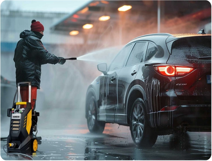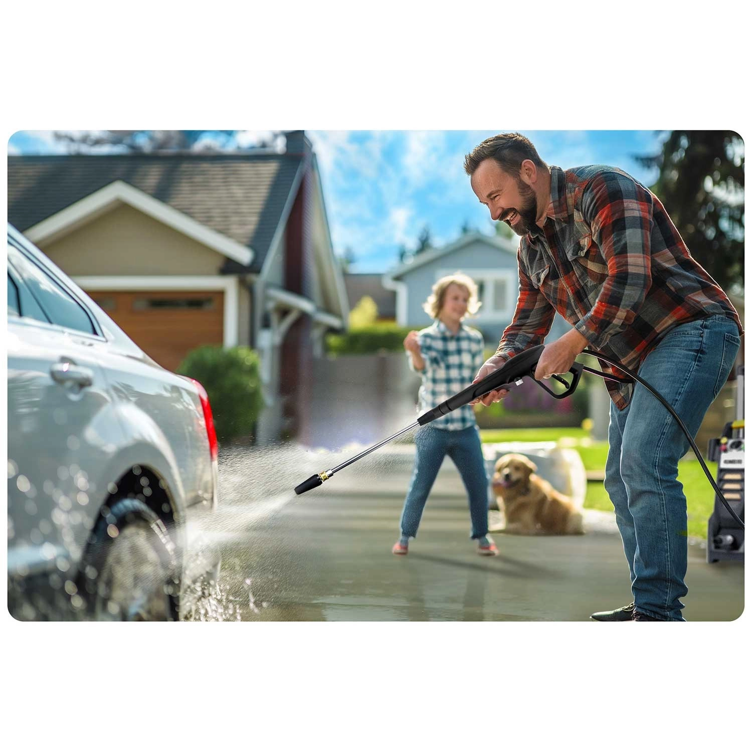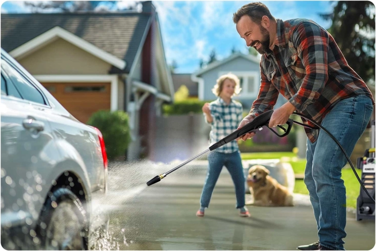 - Kraftig rengøring – op til 195 bar til olieflekker, mudder og mos.