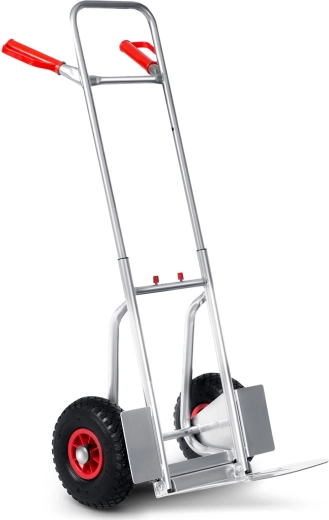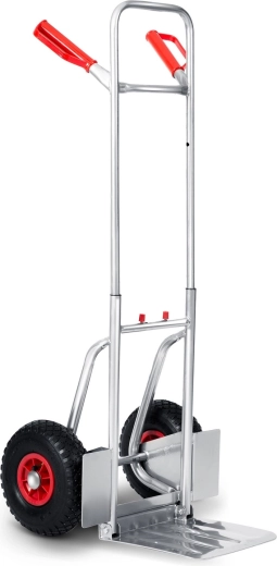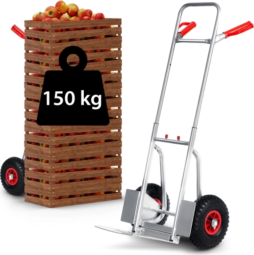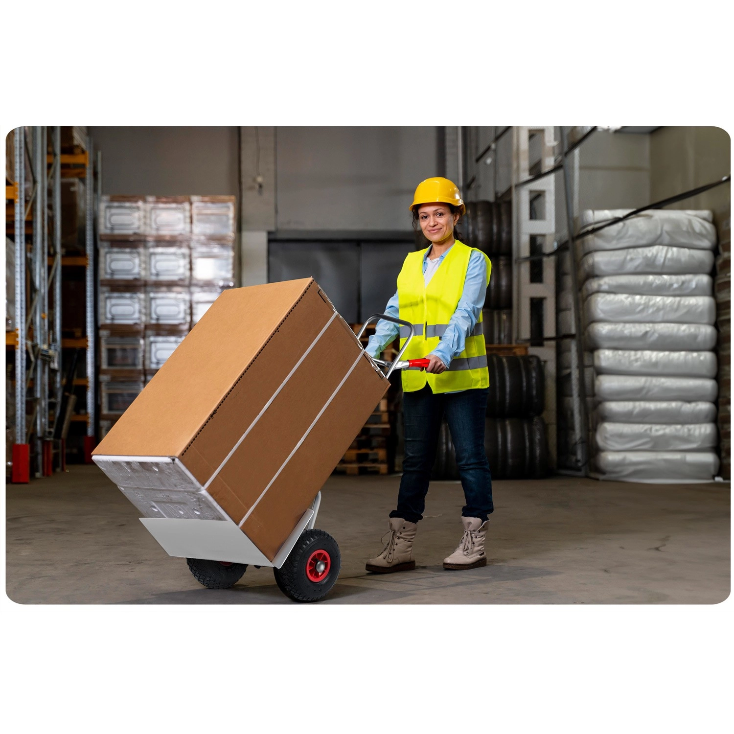 Denne robuste, sammenklappelige sækkevogn er designet til dagligt arbejde i logistik, detail, catering og hjemmeværkstedet. Den solide konstruktion med bæreevne på 150 kg håndterer tunge kartoner, kasser og tønder, mens de to store oppustelige hjul sikrer flydende bevægelse på fliser, beton og ujævnheder.