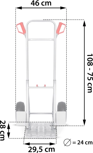 Takket være den justerbare højde 75–108 cm og den sammenklappelige nederste platform tilpasser du nemt sækkevognen til lastens størrelse og sparer plads ved opbevaring. Den galvaniserede stålramme modstår korrosion og slitage, og PVC-håndtag giver et behageligt og sikkert greb selv ved længere tids håndtering.
