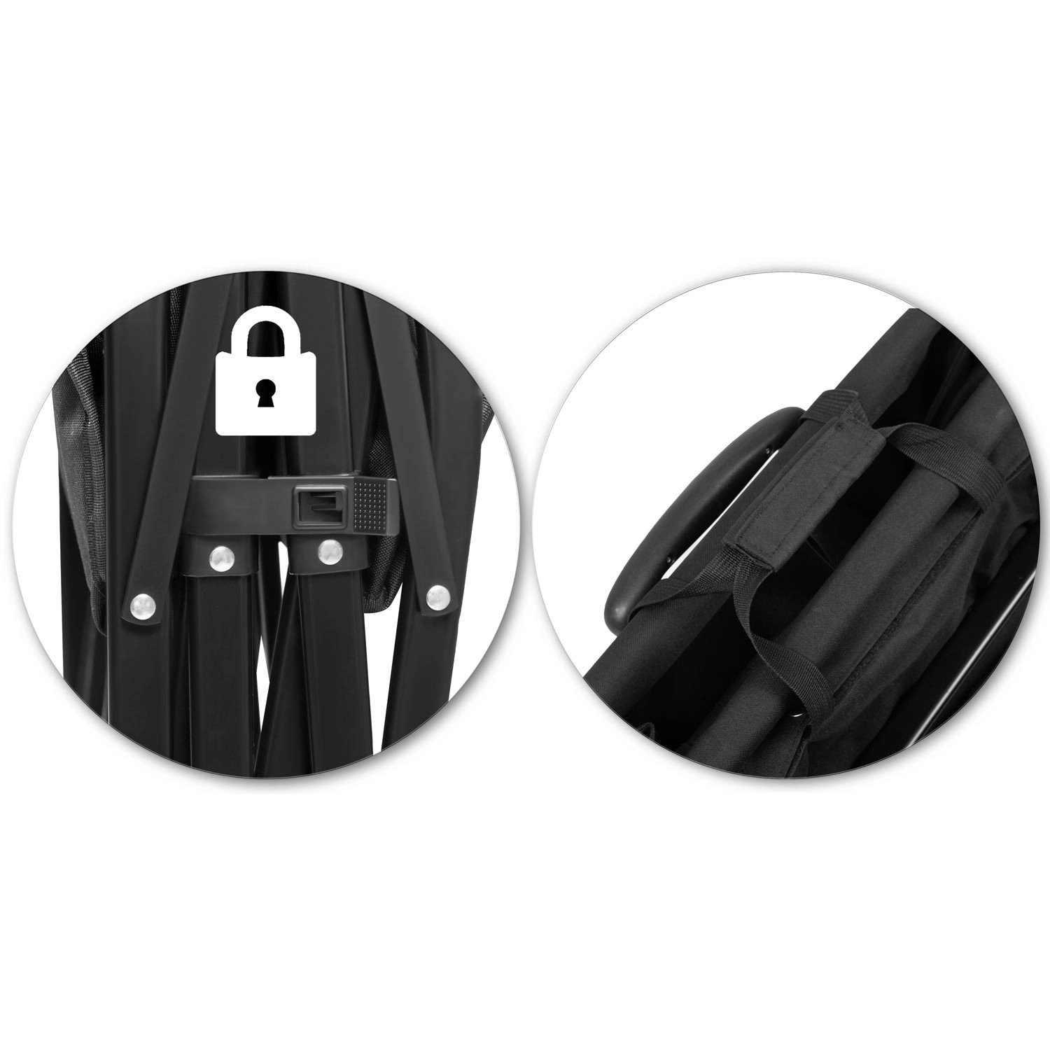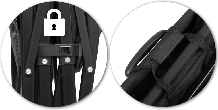 • Lynhurtig sammenklapning til kompakte mål for nem opbevaring i bilens bagagerum eller i garagen.