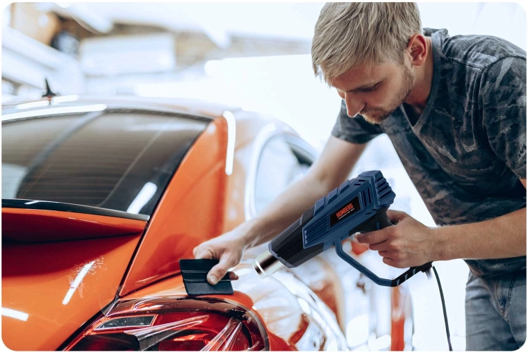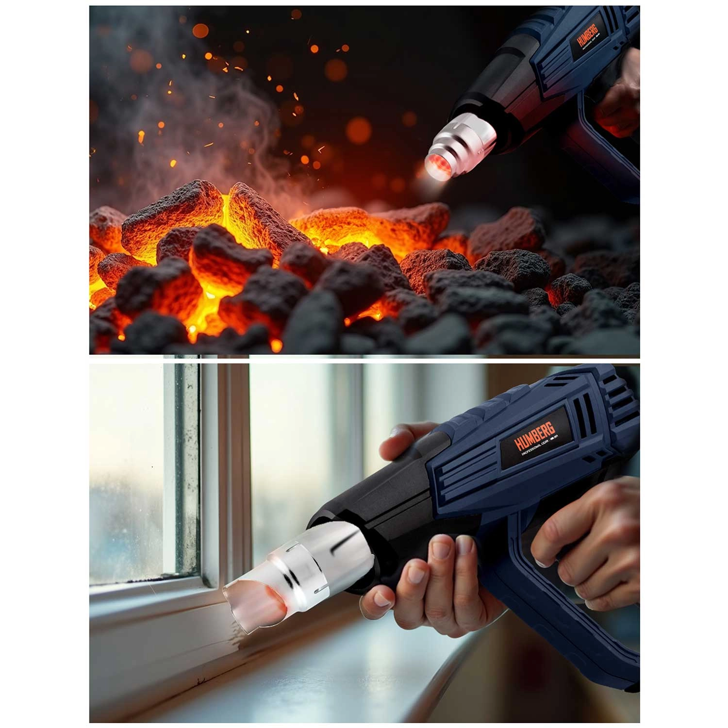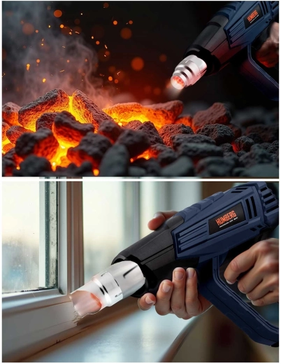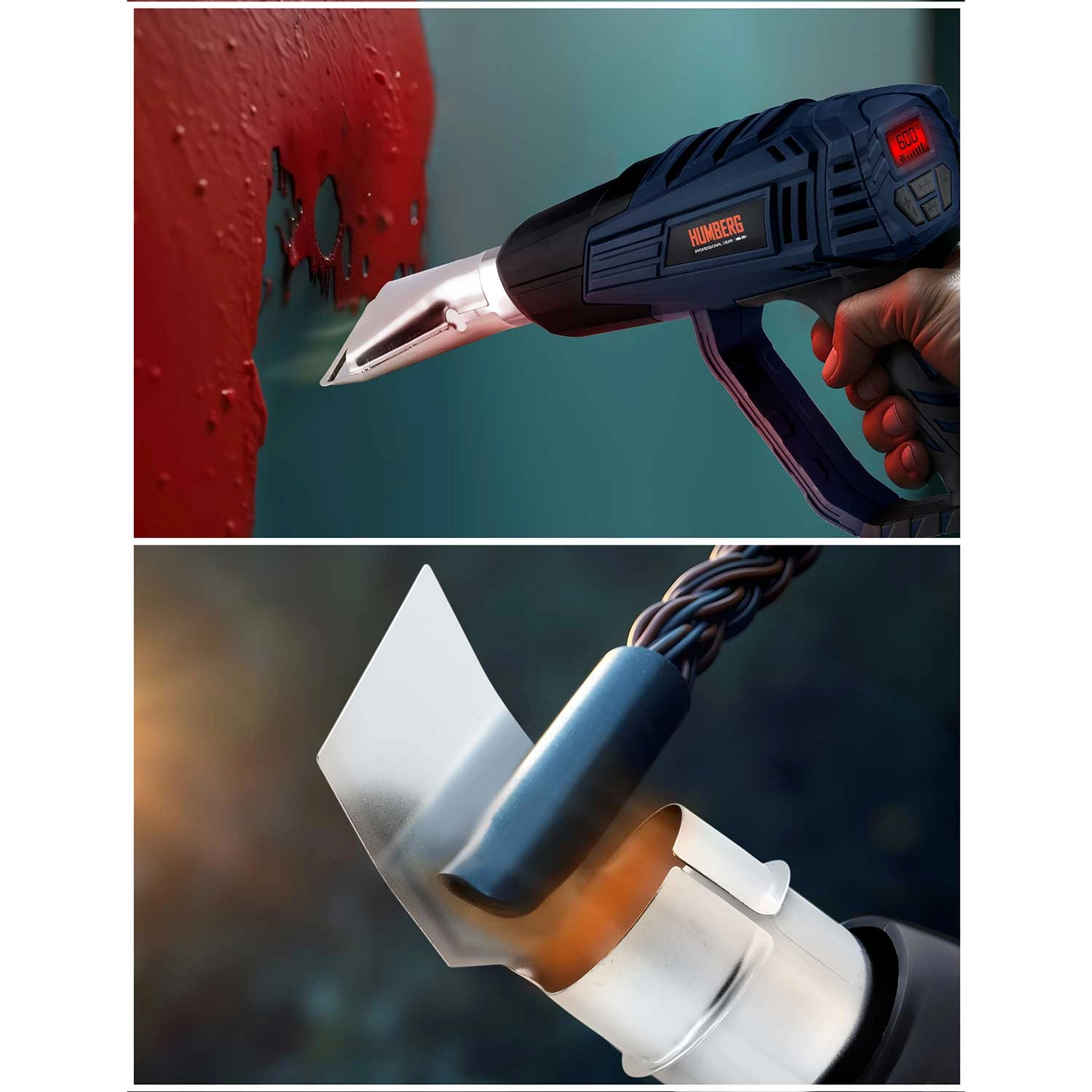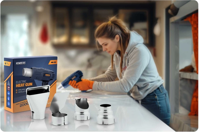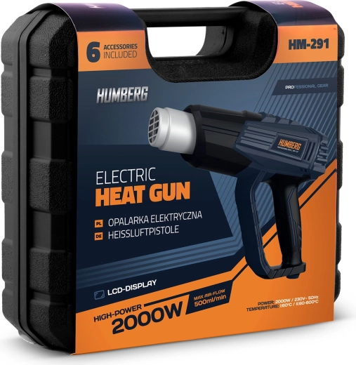 Varmluftpistolen HUMBERG er en pålidelig hjælper til både værksted og hjem. Takket være 2000 W effekt og præcis regulering i trin på 60 °C kan du nemt indstille den optimale temperatur til fjernelse af gamle malinger, tørring, optøning, krympning af kabelsko samt formning af plast. Det farvede LCD-display viser tydeligt den valgte temperatur og informerer med farveskift om opvarmning og klar til brug.