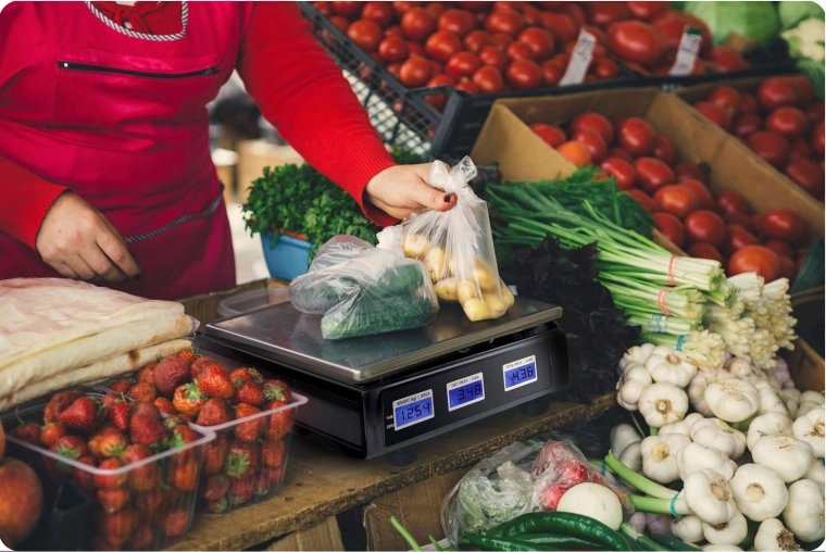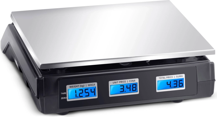 Professionel elektronisk vægt til butikker og markeder med kapacitet op til 40 kg og nøjagtighed på 0,002 kg. Tilbyder seks baggrundsbelyste LCD-skærme synlige fra begge sider, hukommelse til 7 stykpriser, prisberegning efter vægt og strøm fra net og akkumulator. I pakken medfølger 2 udskiftelige akkumulatorer 6 V 4Ah og netadapter. Den rustfri overflade er let at rengøre og hygiejnisk, funktionen AUTO ON/OFF sparer energi. Ideel til intern kontrolvejning, varemodtagelse og lagerstyring.