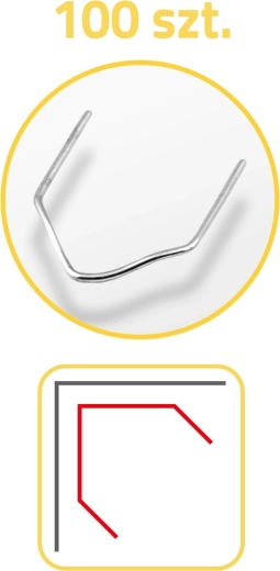 Universelle hæfteklammer til plast-svejsepistoler type D med en udadbuet vinkel på 8 mm i pakke á 100 stk. De er kompatible med de fleste plast-svejsepistoler, fremstillet af kvalitetsmetal og korrosionsbestandige. Ideelle til hurtige og omkostningseffektive reparationer af plastdele uden besøg på værksted.