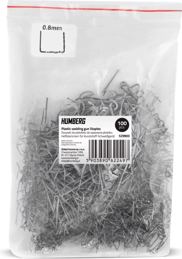 Universelt sæt med 100 stk. C-typen (smal bølge, 8 mm) til reparation af plast. Fremstillet af kvalitetsmetal, korrosionsbestandige og kompatible med alle plast-svejsemaskiner – en hurtig, stærk og økonomisk løsning til revnede kofangere, dæksler og interiører.