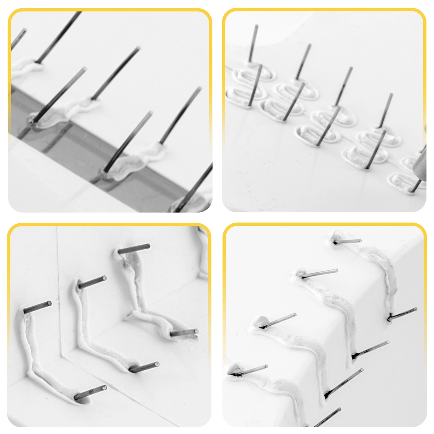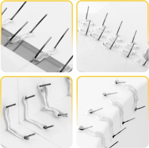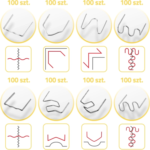 Med dette klemmesæt kan du reparere revnede kofangere, lygteglas, interiørdele og plastdæksler på husholdningsapparater. Forskellige former og størrelser af klemmer muliggør solid fastgørelse af revner i hjørner, buer og på plane flader – både i tynde og tykkere materialer. Takket være det robuste stål er klemmerne stabile, holdbare og rustrer ikke.