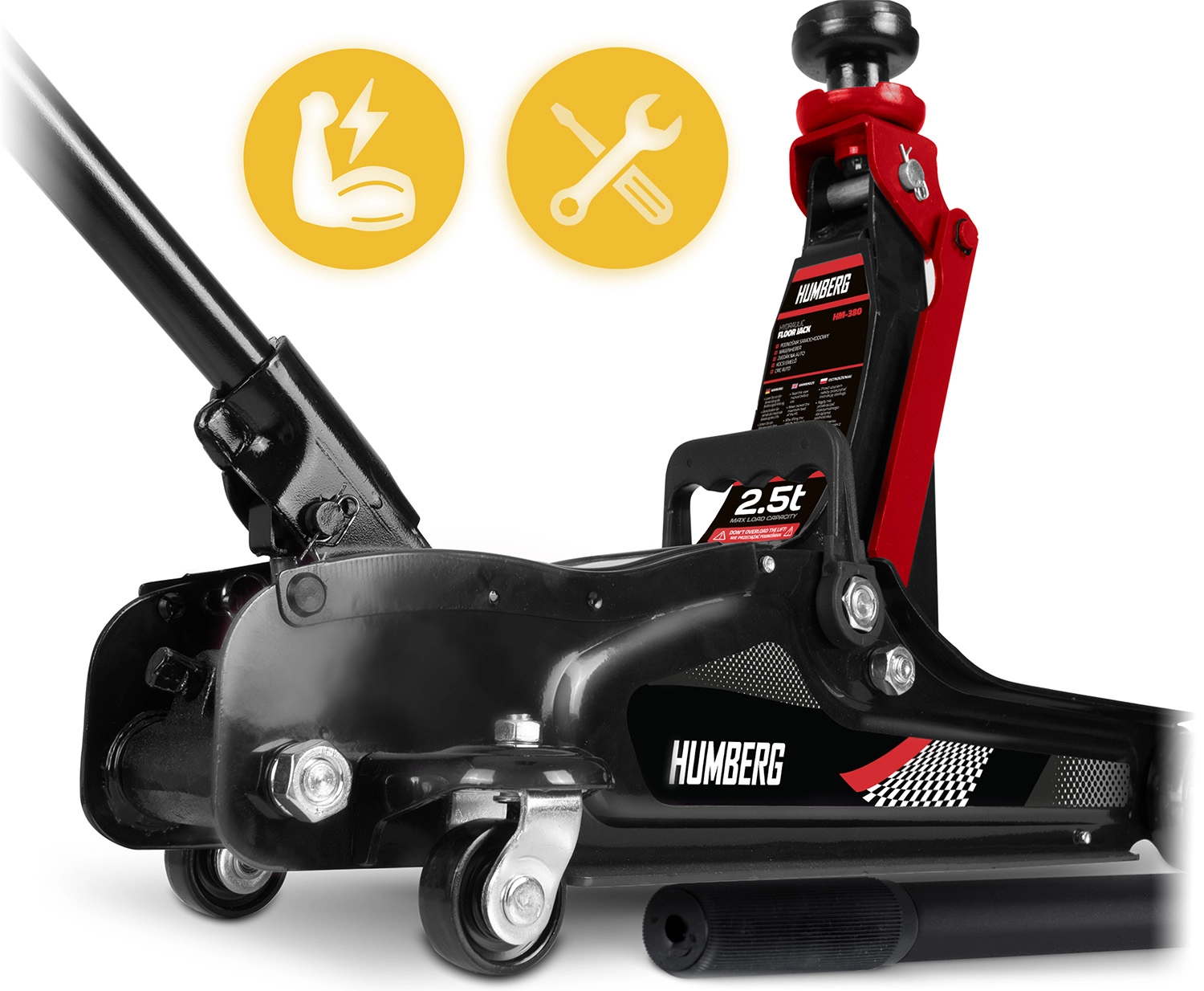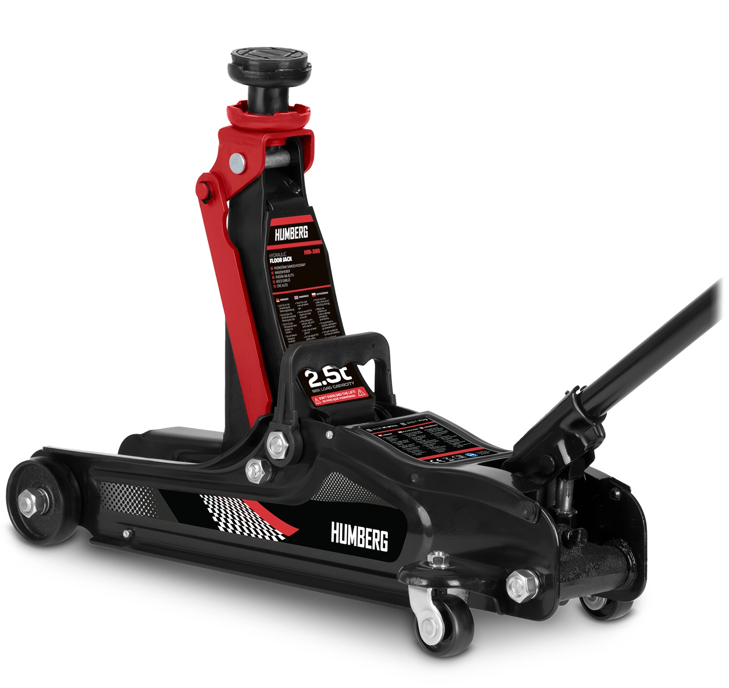 Leder du efter en pålidelig og letbetjent værkstedsdonkraft til hurtig service og hjulskift? HUMBERG HM-380 tilbyder en stærk enkelttrins (enkeltstempel) hydraulikcylinder, en sikkerhedsomløbsventil og stabile stålafstivninger. Den lave profil med et løft på 80–360 mm gør det muligt at arbejde selv på sportsligt sænkede biler, mens bæreevnen på 2.500 kg dækker de fleste personbiler, multivan og mindre varevogne.