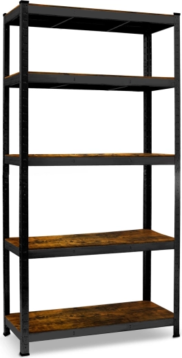 Den robuste sorte Humberg-reol med rustikt trælook på MDF-hylderne kombinerer industriel stil med topfunktionalitet. Konstruktionen af galvaniserede stålprofiler og dobbelte midterafstivninger giver høj stabilitet selv ved fuld belastning. Hylderne kan omplaceres for hver 40 mm, så du nemt tilpasser pladsen til kasser, værktøj og arkivbokse.