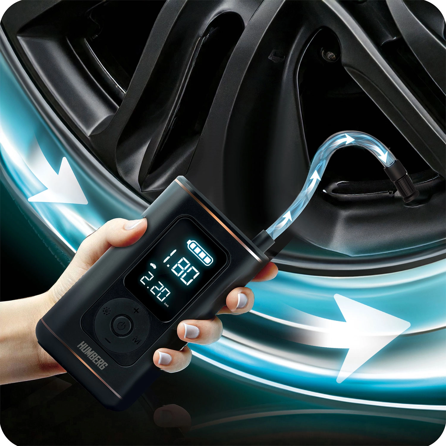 Leder du efter en pålidelig hjælp på farten og derhjemme? Denne bærbare elektriske HUMBERG-kompressor giver en fremragende balance mellem ydeevne og størrelse. Med en luftstrøm på 18 l/min og smart trykovervågning pumper du nemt bildæk, motorcykel- og cykeldæk samt bolde og rekreative oppustelige genstande.