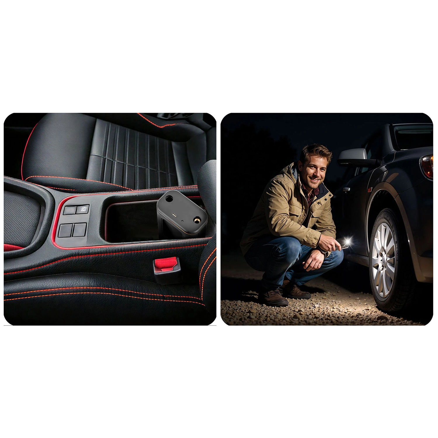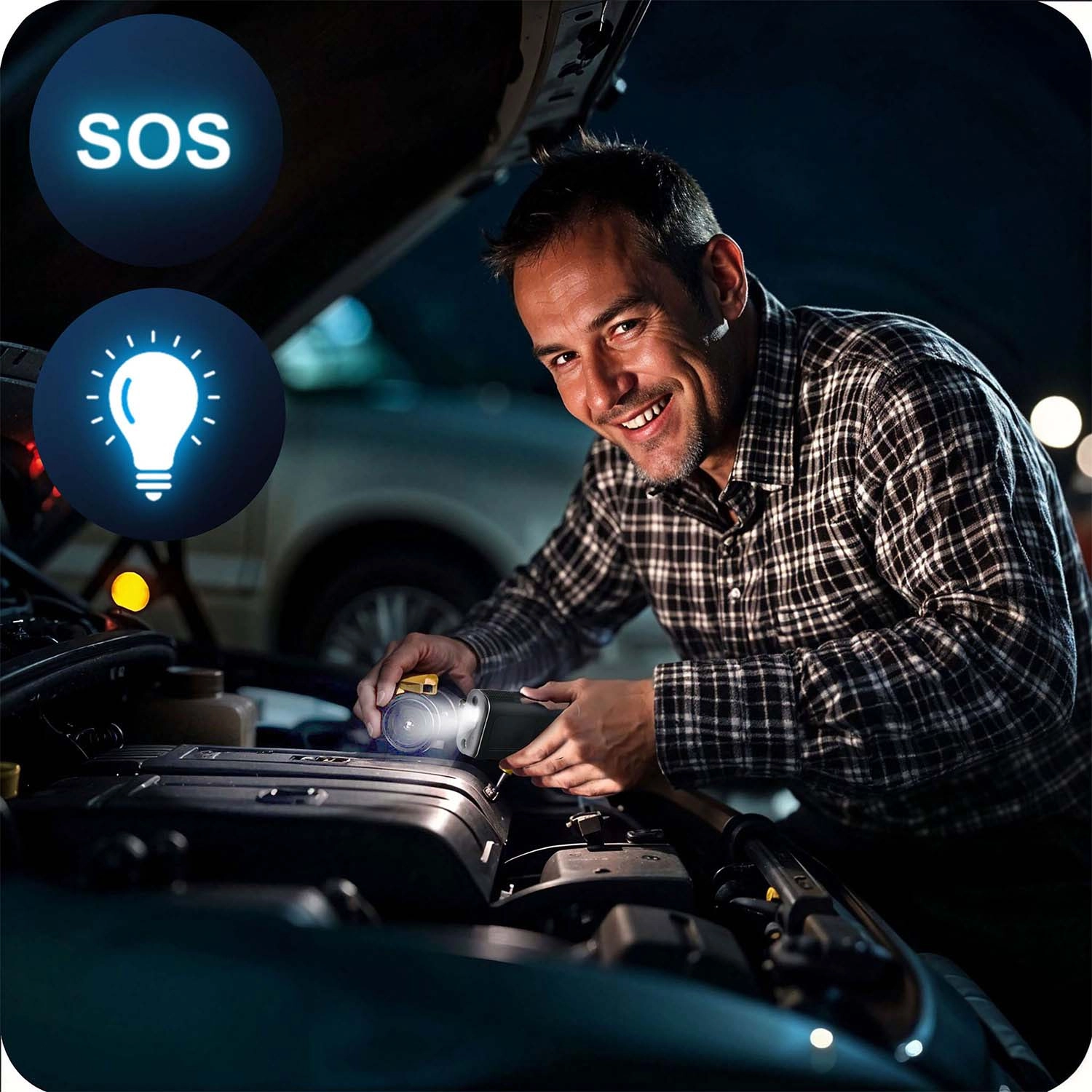 Det indbyggede LED-lys gør arbejdet lettere efter mørkets frembrud, og SOS-nødtilstand øger din synlighed, hvis du må standse i vejsiden.