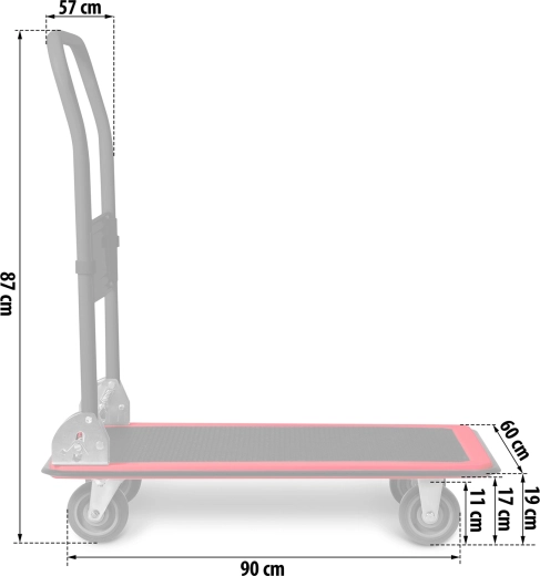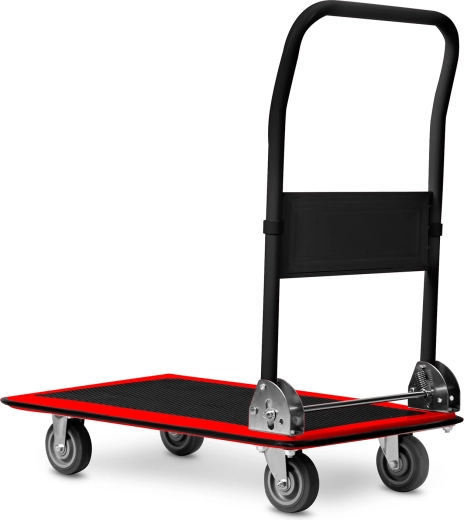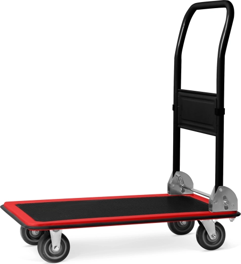 Robust sammenklappelig platformsvogn med en bæreevne på op til 300 kg, ideel til lagre, butikker, flytning og værksteder. Den byder på en holdbar stålkonstruktion, en skridsikker PVC‑platform og manøvredygtige svinghjul for sikker og komfortabel transport af tunge eller voluminøse laster. Et sammenklappeligt håndtag sikrer kompakt opbevaring og nem håndtering.