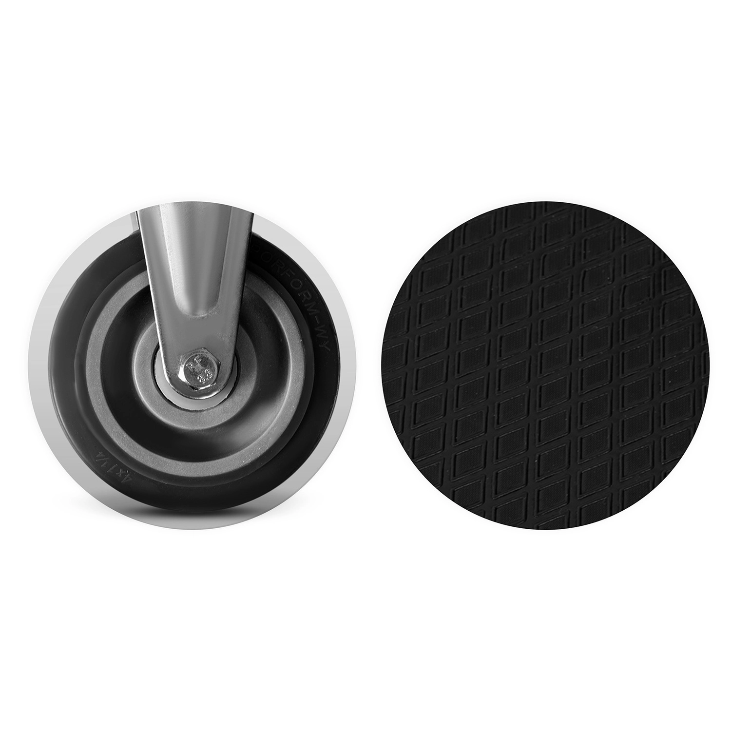 - 4 hjul (min. 2 fuldtsvingende), gummi med metalforstærkning