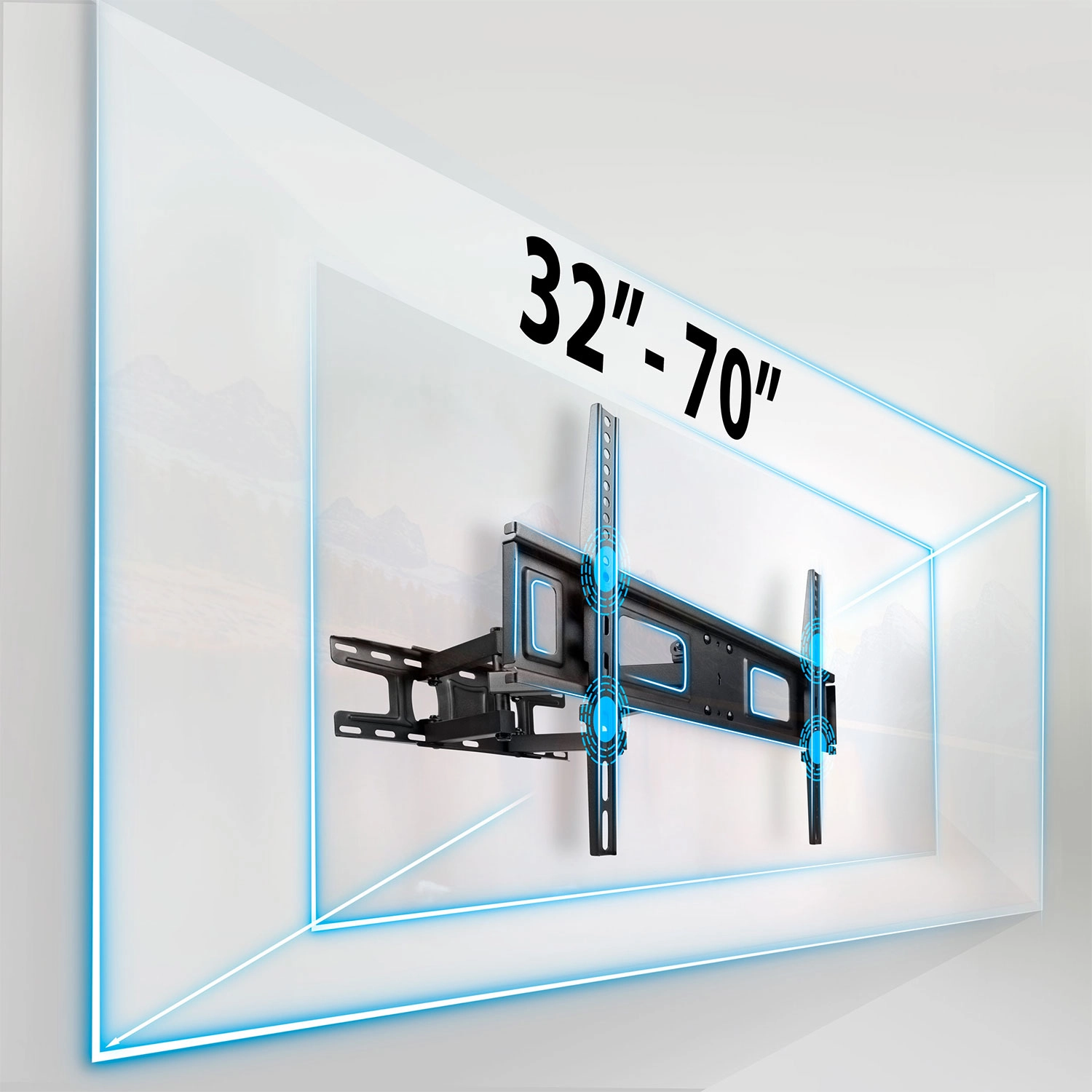 Leder du efter et solidt og fleksibelt beslag til større og tungere TV? Dette dobbeltarms vægbeslag HUMBERT er det ideelle valg til hjemmebiograf og kontor. Det giver jævn justering af afstanden fra væggen i intervallet 6–43 cm, så du nemt kan finjustere både æstetik og ergonomi. Den robuste stålkonstruktion med pulverlakering giver sikkerhed, stabilitet og korrosionsbestandighed.