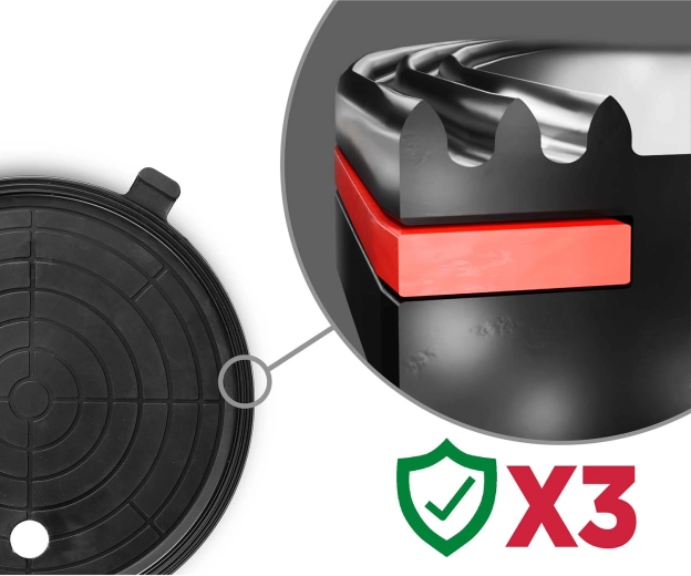 Den store skive med en diameter på 200 mm og tredobbelt gummitætning sikrer fremragende vedhæftning og dæmper vibrationer. Ideel til glas, fliser, sten og slebet beton.