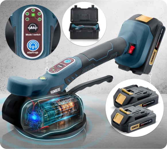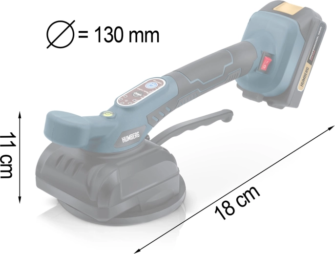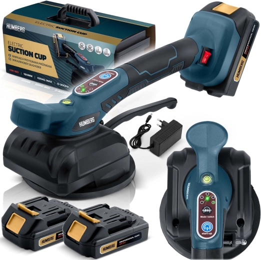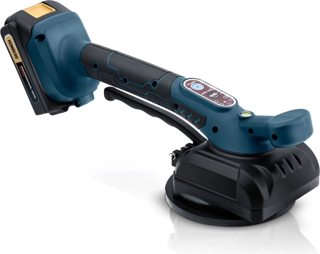 Professionel elektrisk vibrerende flisesuger fra HUMBERG med bæreevne op til 100 kg gør montering og transport af både storformat- og standardfliser hurtigere. Den tilbyder 5 vibrationsniveauer for præcis placering, lang driftstid op til 240 minutter med to batterier og hurtig opladning 4–5 timer. Takket være kraftigt undertryk, integreret vaterpas og avancerede sikkerhedsbeskyttelser arbejder du hurtigere, mere præcist og uden risiko for at beskadige materialet.