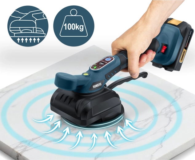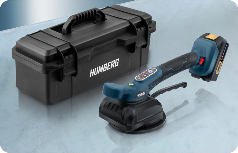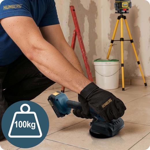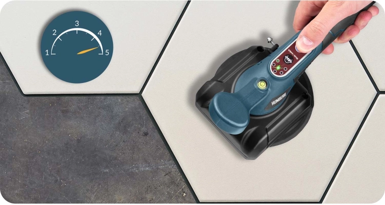 Den vibrerende vakuumsuger HUMBERG kombinerer høj vedhæftning med smart vibrationsteknologi for perfekt fliseplacering. Vibrationerne hjælper med jævn fordeling af klæb, udpresning af luftbobler og opnåelse af en præcis, plan overflade uden unødig manuel efterpresning. Resultatet er hurtigere arbejde og en mere kvalitetspræget finish uden efterfølgende afskalning.
