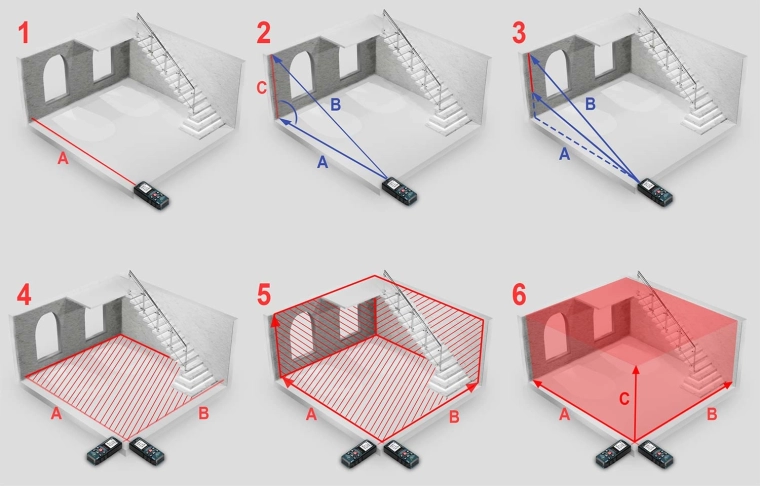 Spar tid med øjeblikkelig beregning af areal og volumen samt indirekte højdemåling via Pythagoras-metoden. Funktion til addition/subtraktion accelererer arbejdet på byggepladsen og ved renovering.