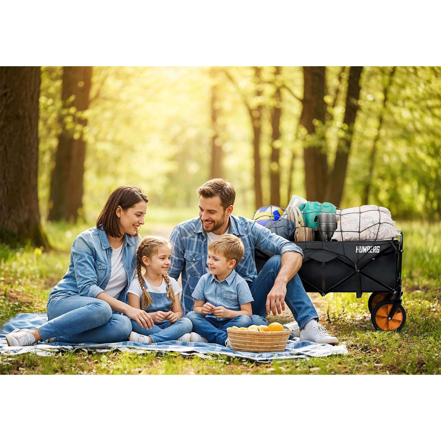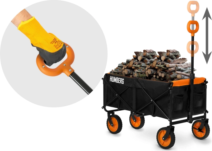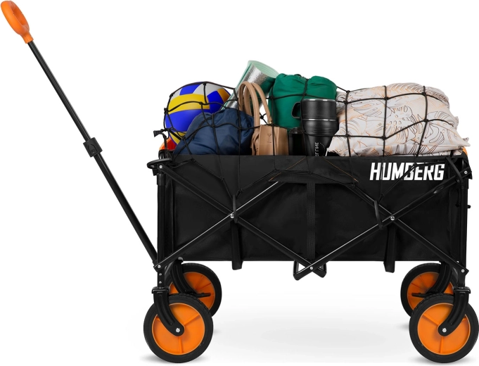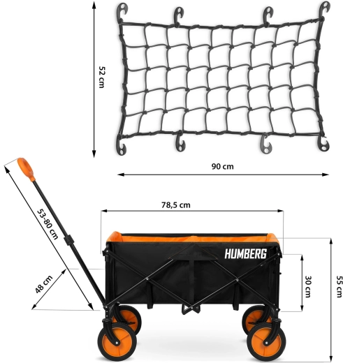 Gør transport af udstyr, indkøb eller haveaffald let. Den sammenklappelige HUMBERG-vogn tilbyder generøs kapacitet på 100 l, bæreevne op til 90 kg og en konstruktion designet til at blive foldet ud og sammen på få sekunder. Takket være den robuste stålramme og det hurtigtørrende, let aftørrelige stof er den klar til daglig brug både hjemme og i felten.