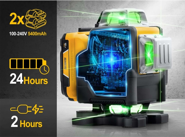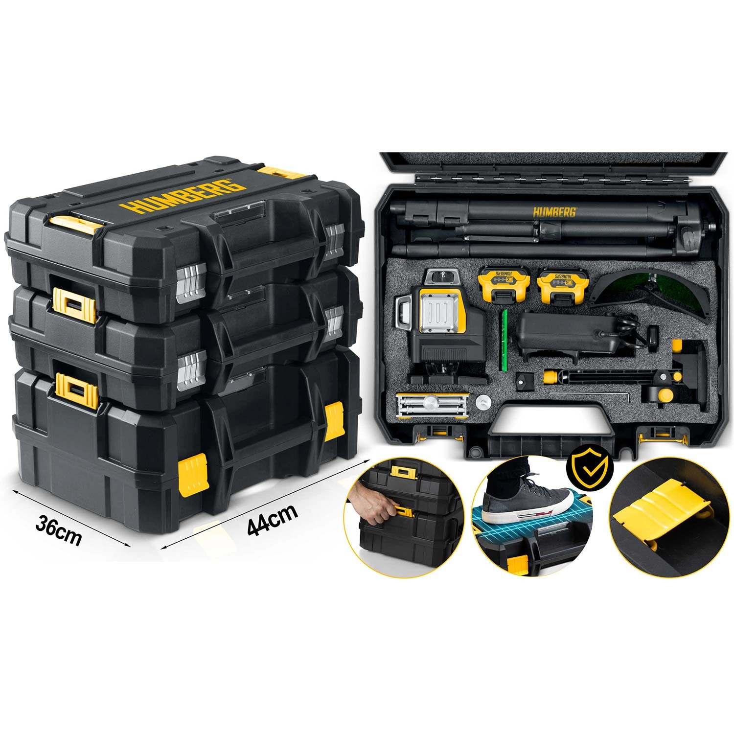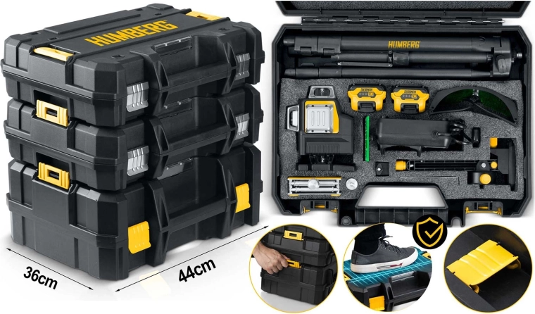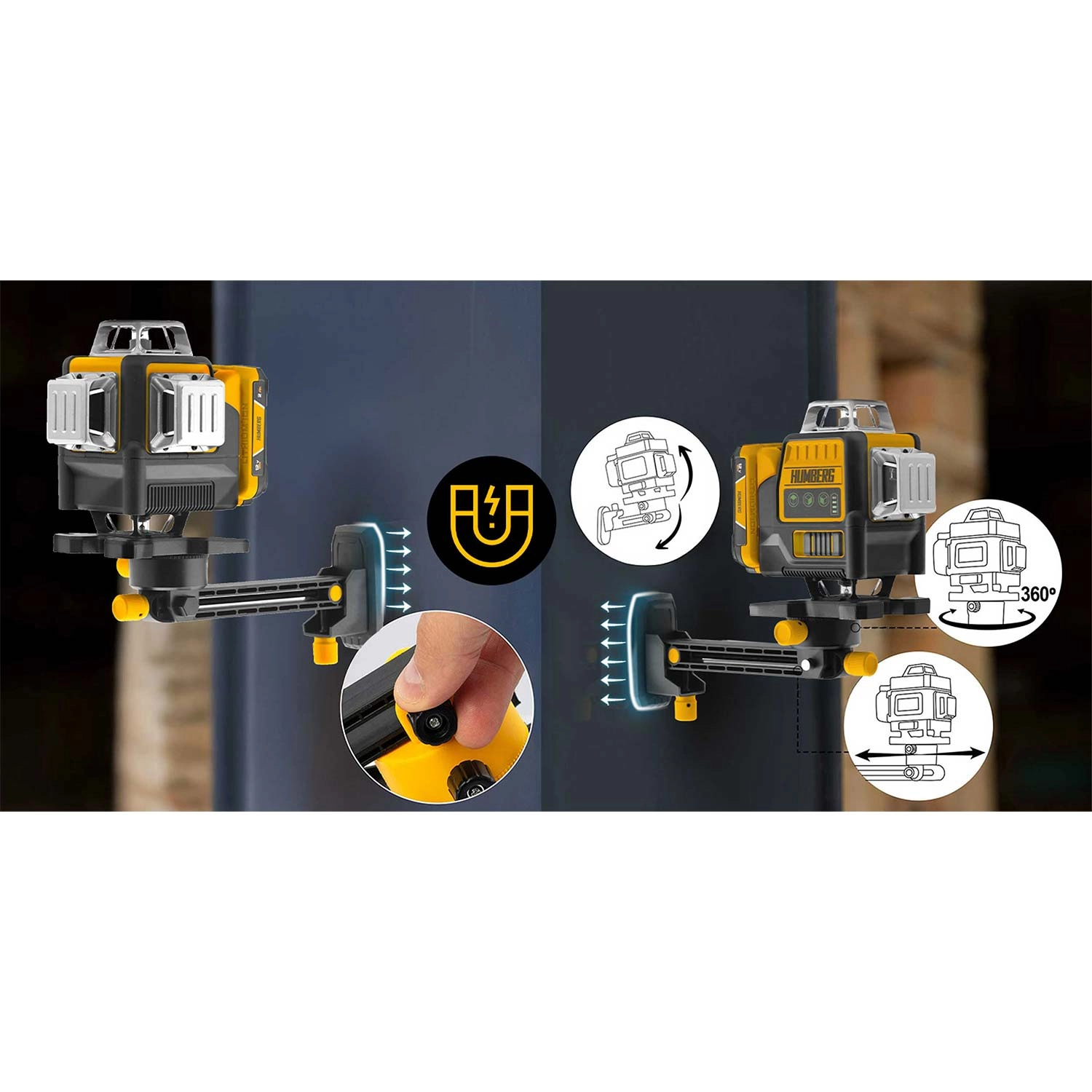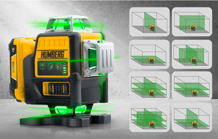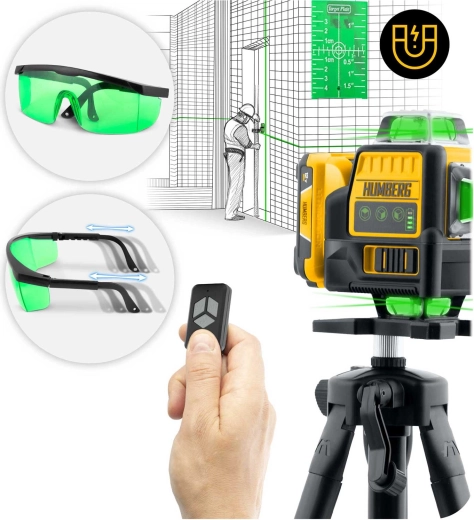 HUMBERG HM-171 er et præcist 4D laser-nivelleringsapparat til krævende fagfolk og gør-det-selv-brugere. Den grønne stråle (515 nm) er meget synlig selv i stærkt lys, og 16 linjer muliggør hurtig og detaljeret udligning af horisontaler og verticaler i ét rum. Takket være selvnivelering arbejder du uden tidskrævende opsætning og med garanti for perfekt plan.