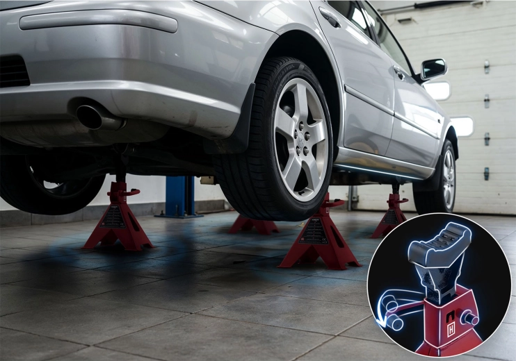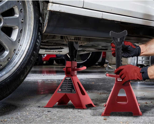 - Sikker støtte ved arbejde under køretøjet – pålidelig sikring efter løft med donkraft.