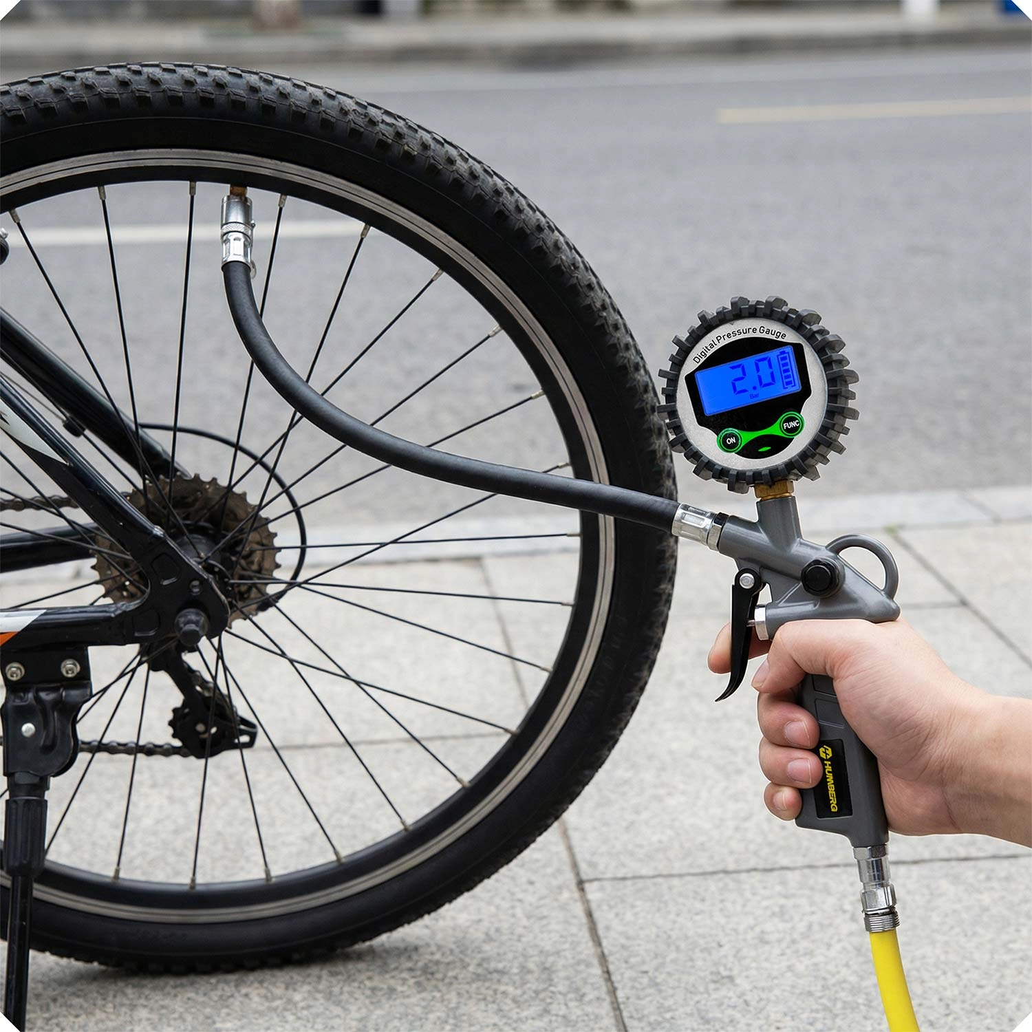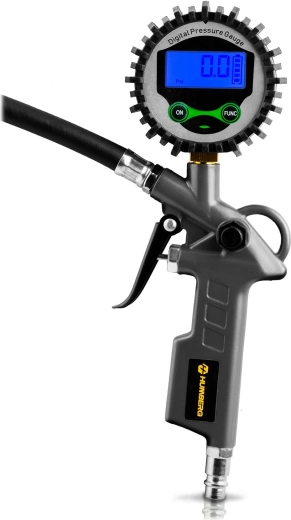 Den digitale dækoppumper HUMBERG HM-260 er en pålidelig hjælper til bil, motorcykel og cykel. Den store bagbelyste LCD-skærm muliggør øjeblikkelig og præcis aflæsning af trykket, enhedsskift dækker alle gængse standarder, og den ergonomiske aftrækker sikrer jævn efterpumpning præcist til den ønskede værdi.