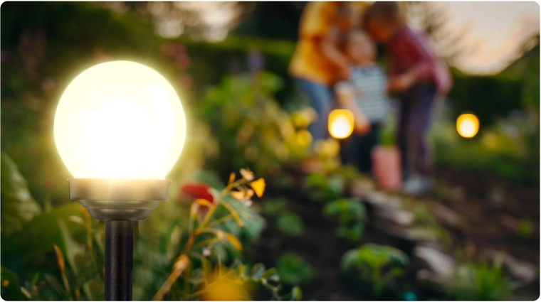 - Ingen kabler og ingen kompliceret montering – blot stik dem i jorden