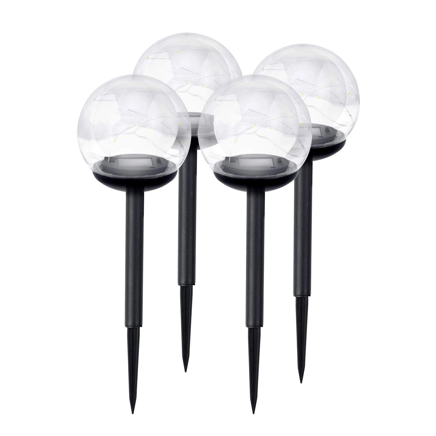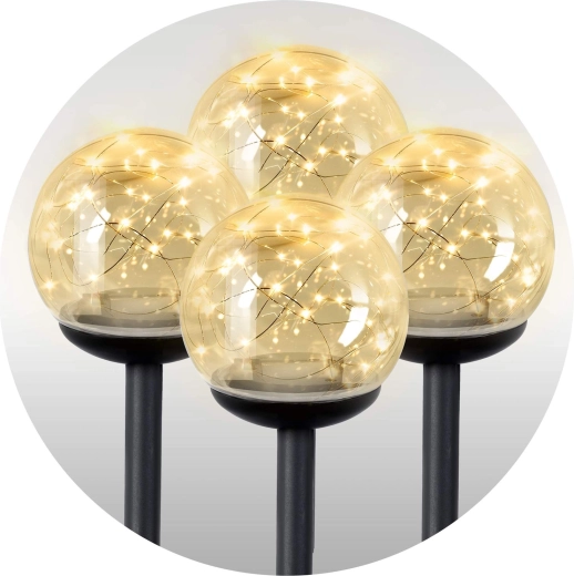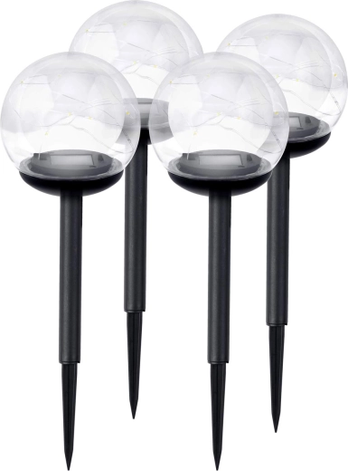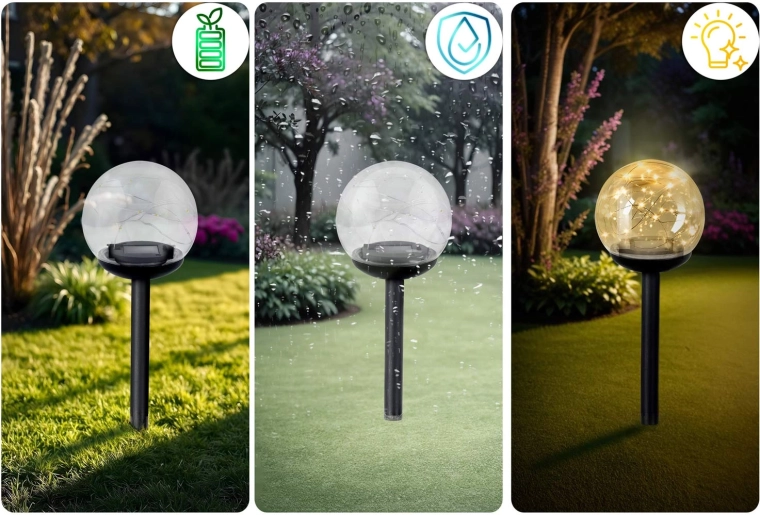 Skab en magisk stemning i haven med et sæt på fire solcelledrevne kuglelamper. Takket være amorfe paneler fungerer de selv i svagt lys, har en praktisk skumringssensor, automatisk tænding om natten og vandafvisning IPX4. Den enkle jordspids gør det let at sætte dem i jorden, og det universelle design passer flot til bede, græsplæner og stier.