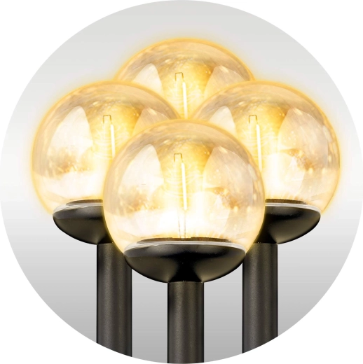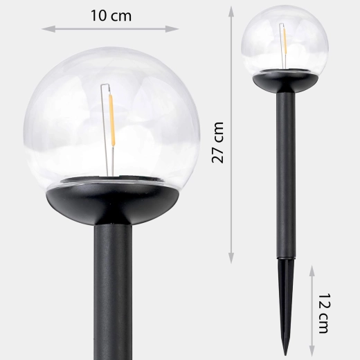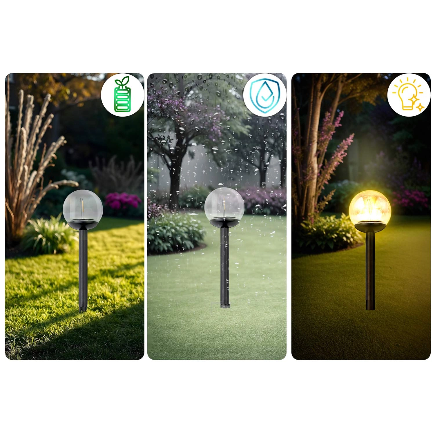 Elegante solcellelamper med klart kuglehoved bringer hyggeligt, varmt lys og et moderne udtryk til enhver have. Det universelle design passer perfekt blandt højere blomster og urter samt langs stier og indkørsler. Installationen er hurtig – sæt spyddet i jorden og lad solen gøre arbejdet.