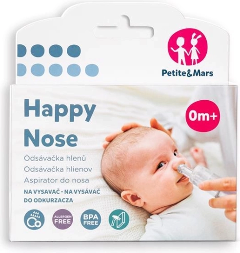 Giv din baby hurtig lindring ved forkølelse med næsesugeren til støvsuger PETITE & MARS Happy Nose. Den gennemtænkte konstruktion uden slange giver hurtig og skånsom sugning, maksimal hygiejne og sikker brug fra fødslen. Den gennemsigtige krop gør det nemt at kontrollere renheden, den særlige form på mundstykket beskytter slimhinden, og kompatibiliteten med din hjemmestøvsuger sikrer stabilt og effektivt undertryk for friere vejrtrækning.