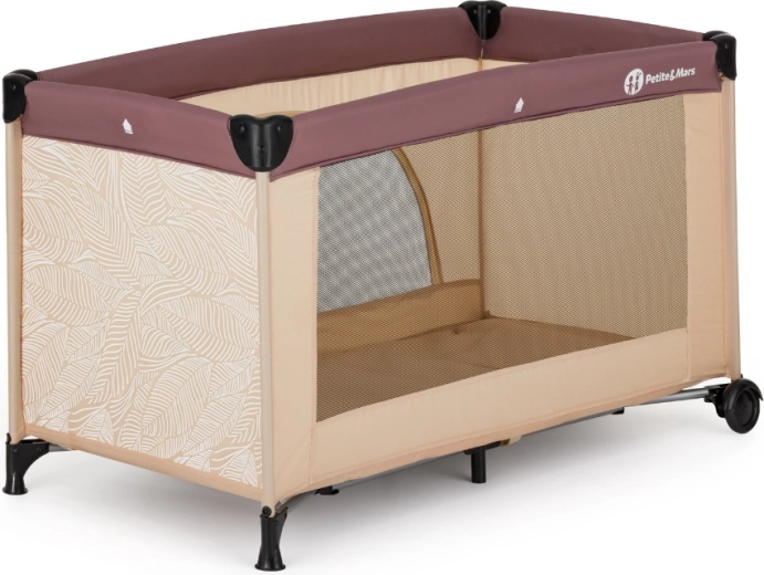 Rejsesengen PETITE&MARS Nyja Urban Jungle Sand er et ideelt valg til sikker søvn og leg for dit barn. Takket være sideåbning med lynlås giver den nem adgang, mens mesh-sider sikrer fremragende synlighed og optimal ventilation. Den robuste konstruktion med integreret sikring mod utilsigtet sammenklapning giver stabilitet, som forældre værdsætter derhjemme, hos bedsteforældre og på ferie.