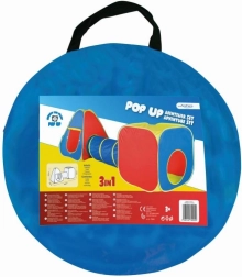Skab børnenes egen eventyrverden. Sættet med tre telte og tunnel fremmer aktiv bevægelse, udvikling af fantasi og leg med venner. Takket være pop-up systemet folder teltene sig ud på få sekunder, og efter legen kan de nemt pakkes sammen.