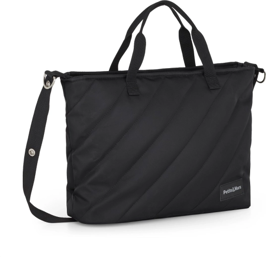 Pusletasken Petite&Mars Mia i farven Absolute Black er et alsidigt valg til enhver klapvogn og til hverdagsbrug. Kvalitetsmaterialer, behagelige at røre ved, som er modstandsdygtige over for fugt, og diagonal quiltning giver den et moderne udtryk, mens den gennemtænkte opdeling gør det nemt at organisere ting til både barn og forældre.