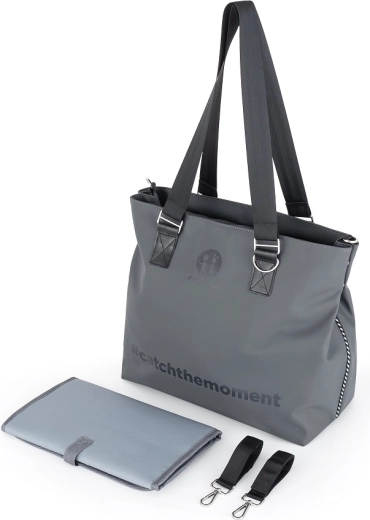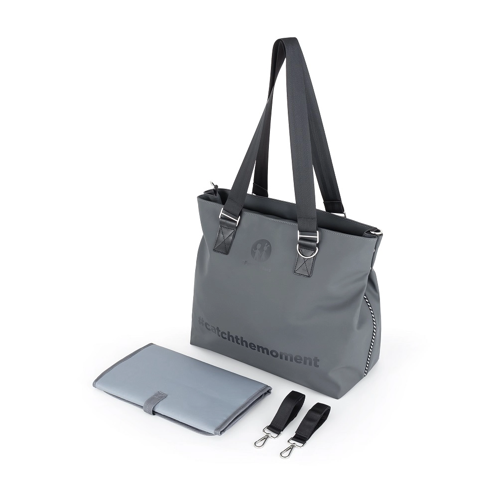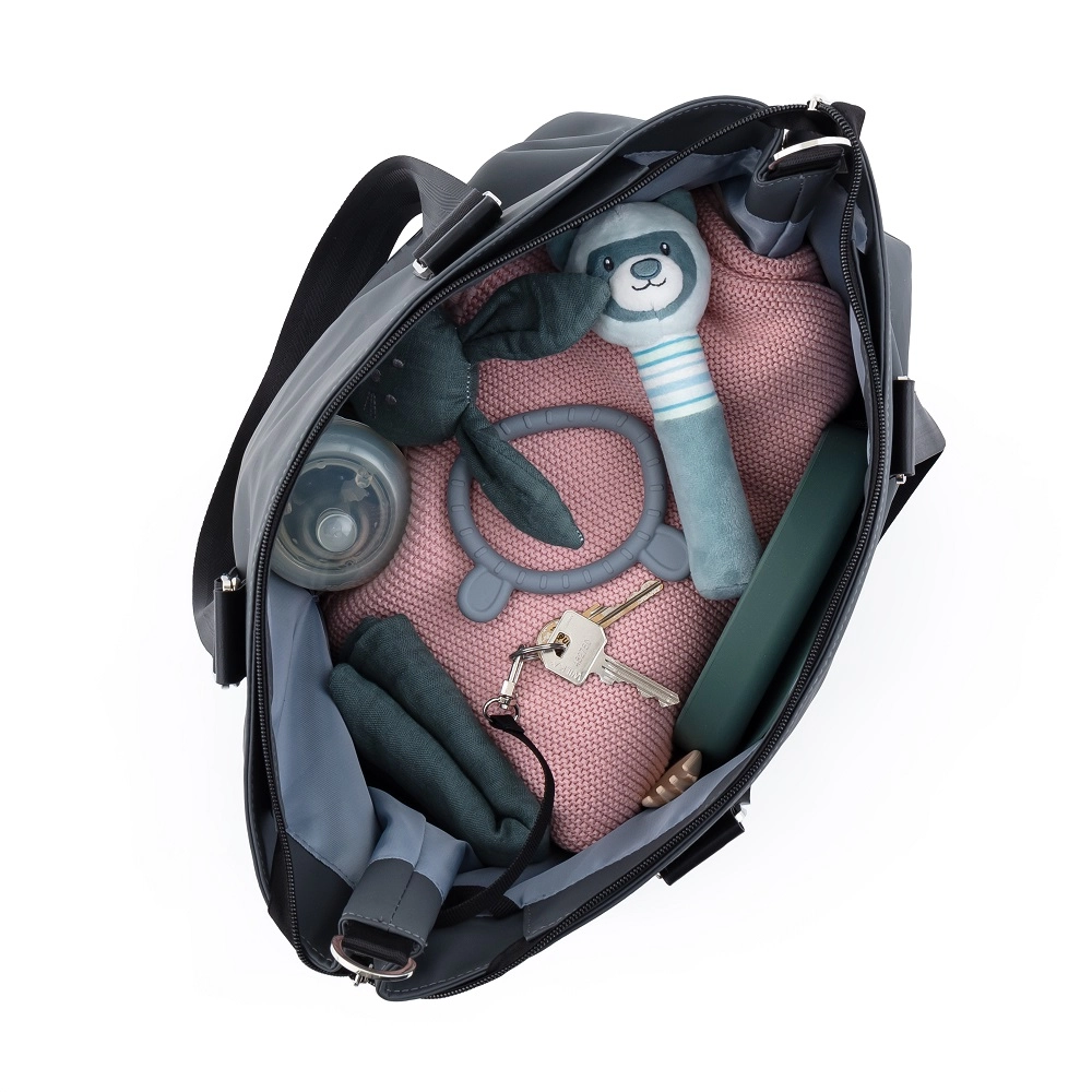 Tasken er fremstillet af slidstærk polyester, der er modstandsdygtig over for fugt, og har en termolomme til at holde flaskens temperatur, en vandtæt lomme til vådt tøj, et rum til tablet og en snor til nøgler. I pakken medfølger en foldbar pusleunderlag. Aftagelige stropper muliggør sikker montering på barnevognen, mens de behagelige skulderstropper er gode, når du bærer den over skulderen.