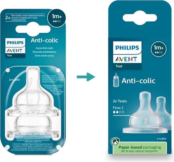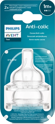 Philips AVENT Anti-colic sutter er designet til behagelig og rolig madning. Den særlige envejsventil lader luft strømme ind i flasken under sutningen, hvilket mindsker luftindtag og hjælper med at forebygge ubehag forårsaget af kolik. Den bløde, tynde silikone med forlænget rilleribning giver modstandsdygtighed mod deformation og lang levetid.