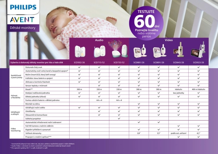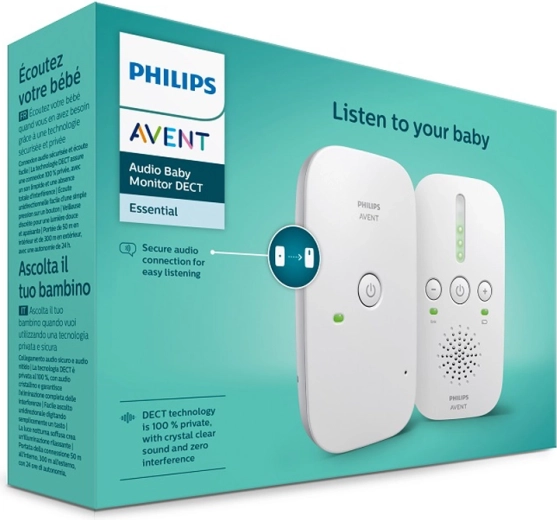 Hold øje med din baby i ro og mag. Philips Avent SCD502 bruger pålidelig DECT-teknologi for krystalklar lyd uden forstyrrelser fra andre enheder. Takket være rækkevidde op til 300 m kan du bevæge dig frit rundt i hus og have og være sikker på at opfange enhver lyd.