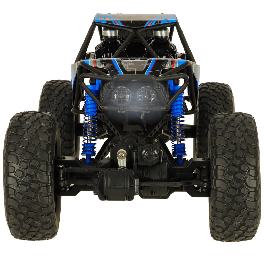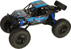 Denne robuste RC-crawler klarer grus, græs og ujævne stier. De store, dybt mønstrede hjul udligner ujævnheder op til 30 mm og giver sammen med den fjedrede affjedring fremragende greb og stabilitet. Med den enkle pistol-controller er modellen ideel til både begyndere og øvede.
