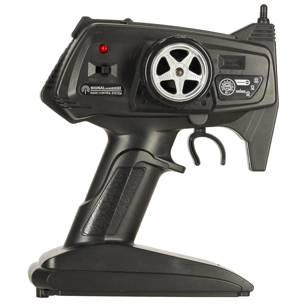 Den moderne 2,4 GHz-sender sikrer hurtig respons og mulighed for drift af flere modeller samtidig uden interferens. Den solide konstruktion med detaljeret finish garanterer høj holdbarhed og lang levetid ved offroad-kørsel.