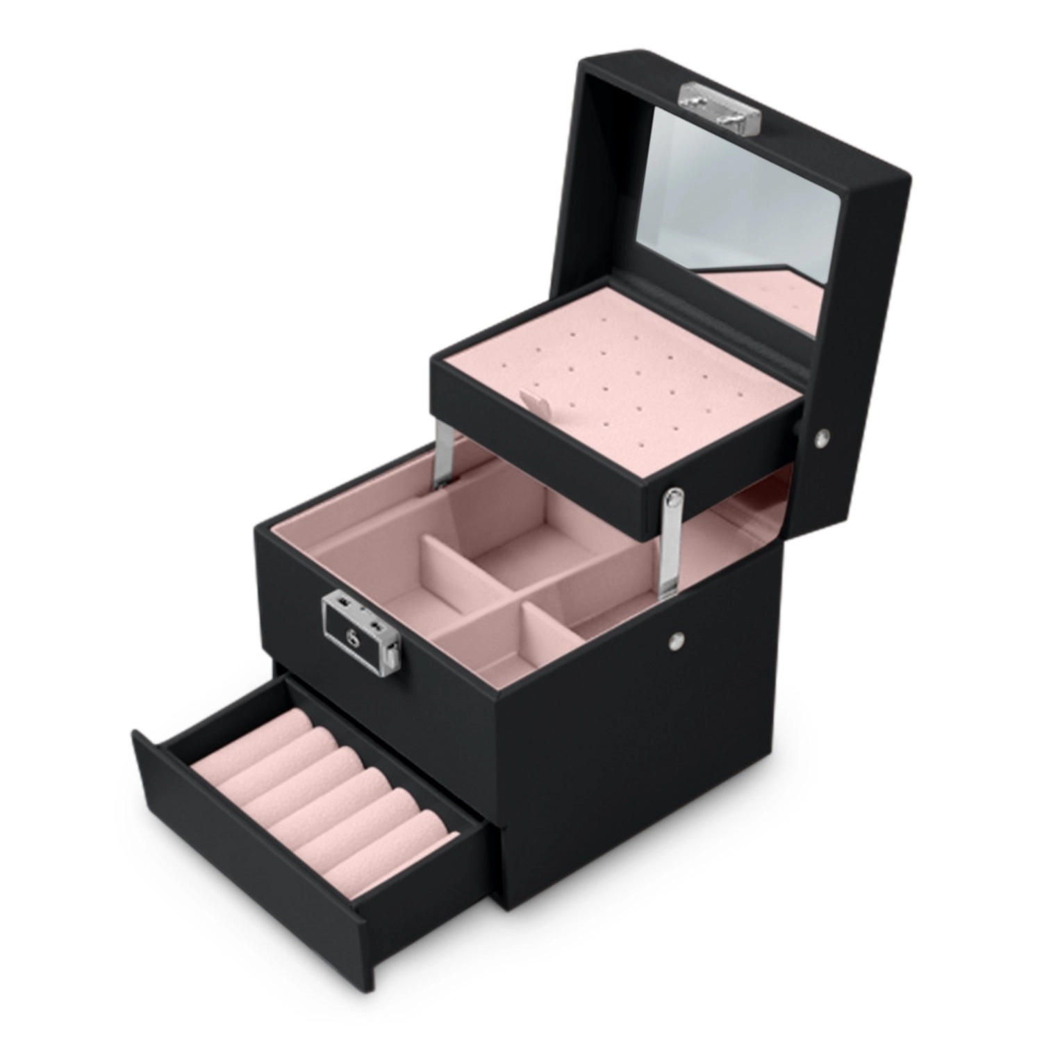 Smykkeskrinet er let, kompakt og takket være håndtaget ideelt også til rejser. Det moderne look og de præcise detaljer gør det til en fremragende gave til både piger og voksne kvinder – en alsidig hjælper til perfekt organisering af smykker.