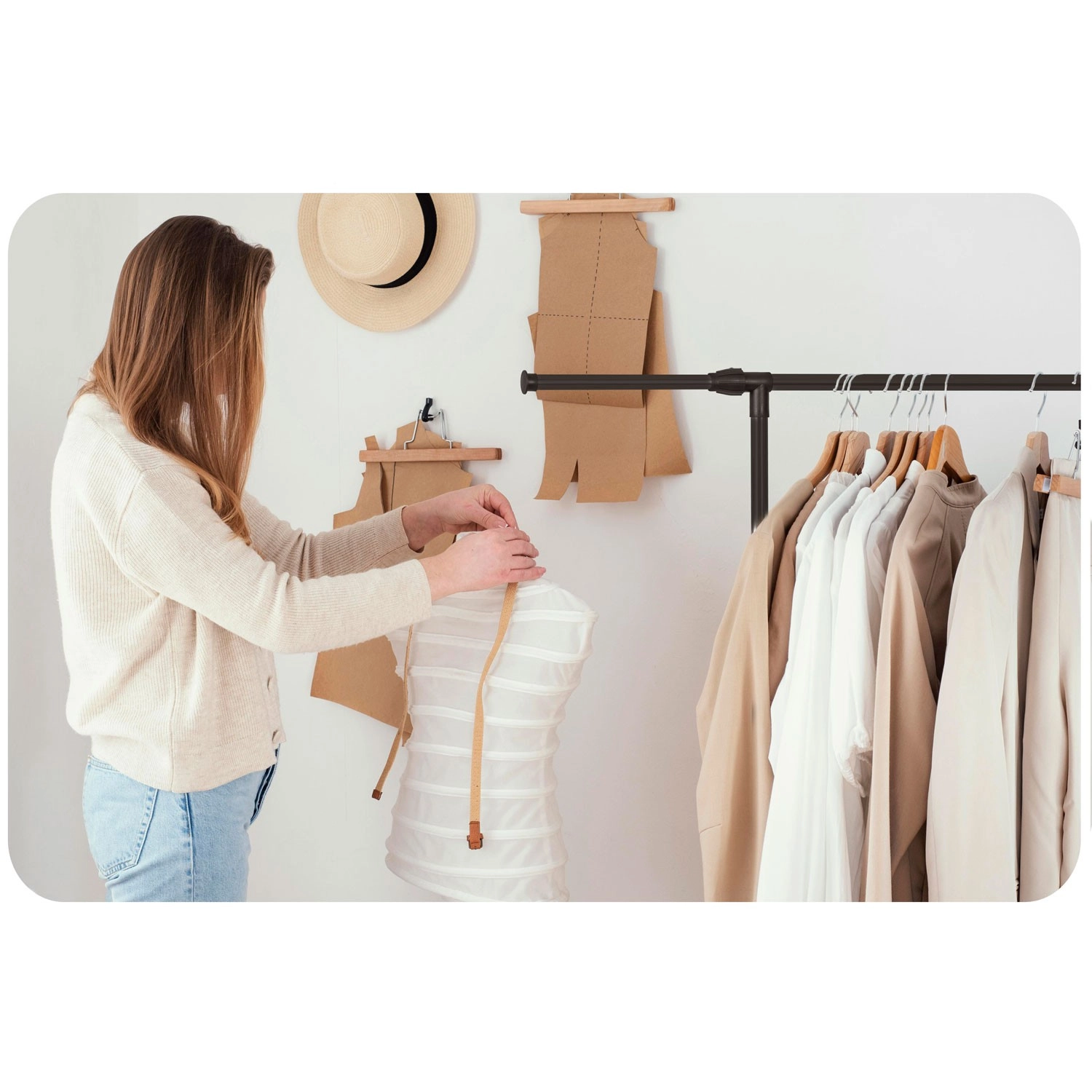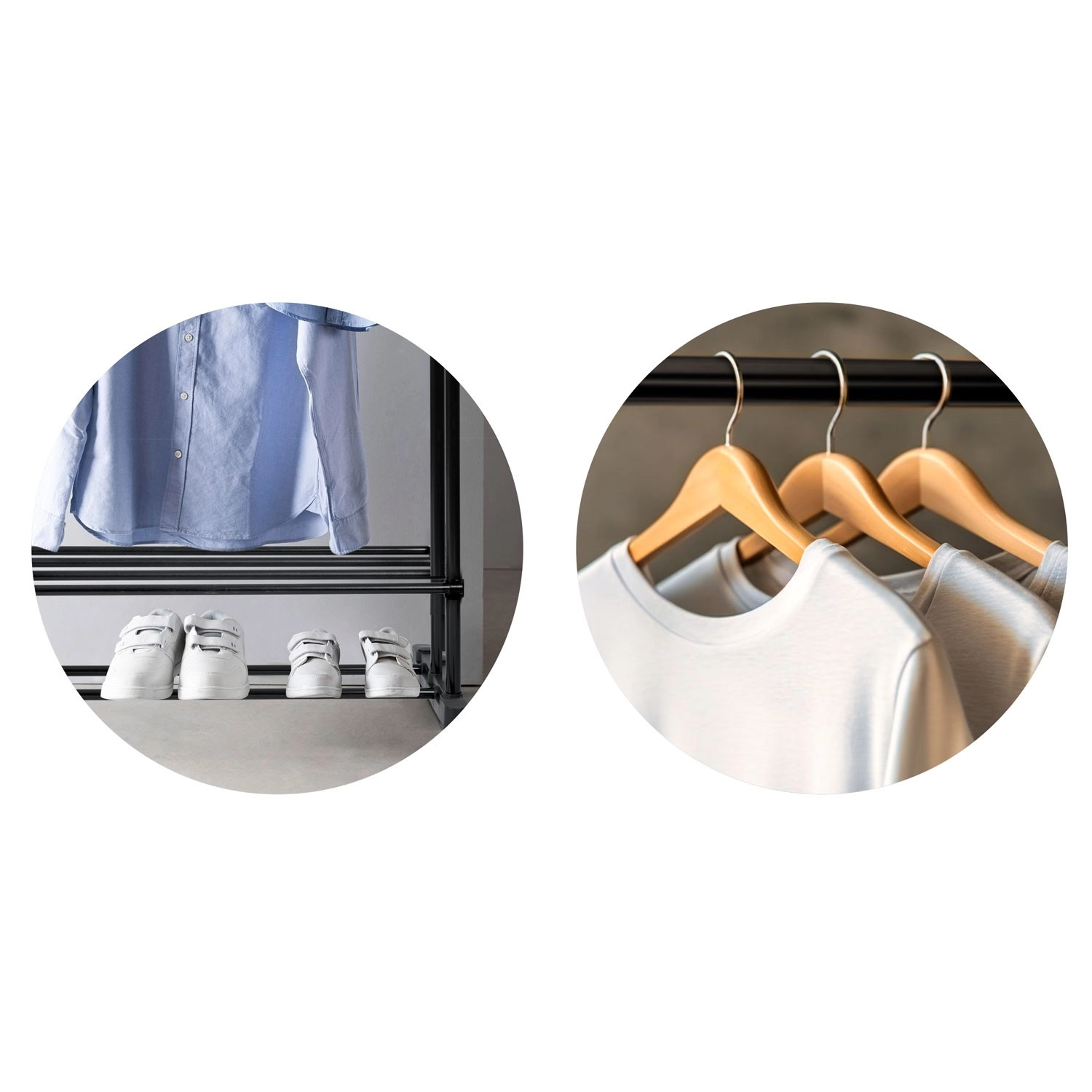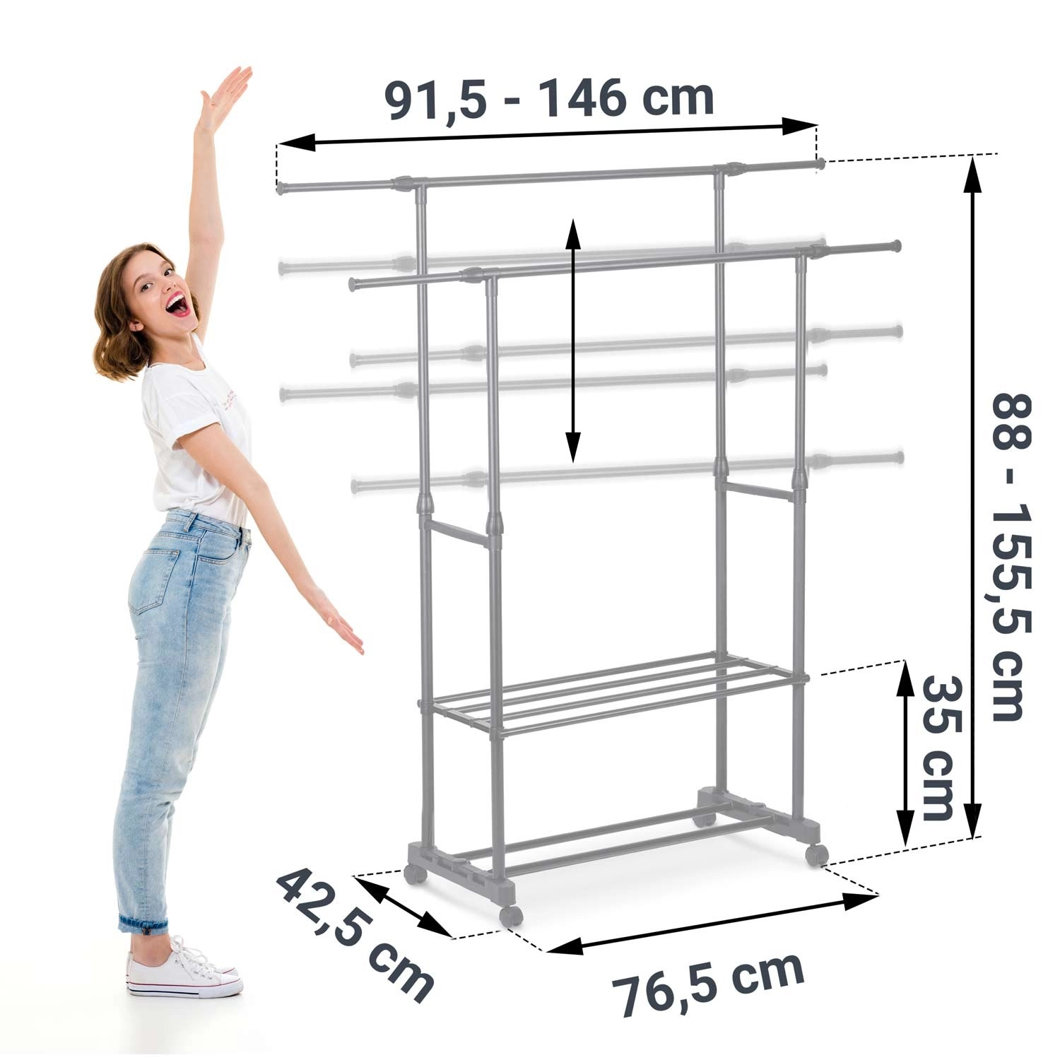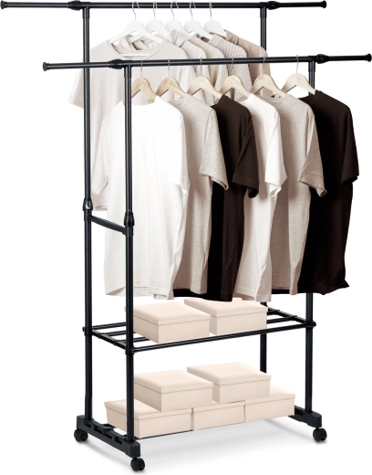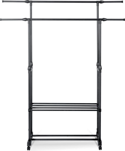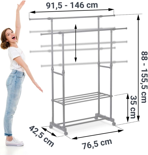 Tilpas stativet til pladsen og typen af tøj. Du kan nemt justere højden til lange frakker og bredden for højere kapacitet uden at gå på kompromis med stabiliteten.