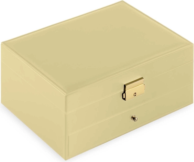 Elegant og solidt forarbejdet smykkeskrin til sikker opbevaring af ringe, øreringe, armbånd og halskæder. Let, låsbart og bærbart med praktiske rum, skumruller til ringe, plade til øreringe, kroge til kæder og skuffe. Indvendigt spejl og blød foring beskytter smykker mod ridser. Et glimrende valg til både kvinder og teenagepiger.