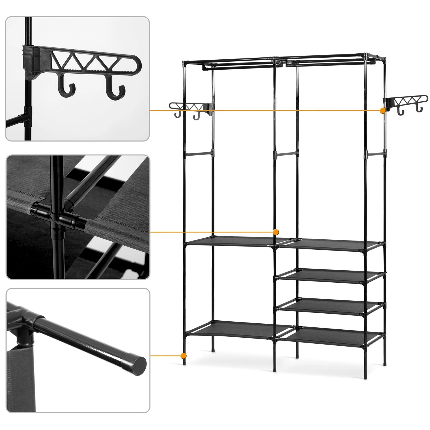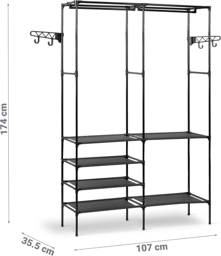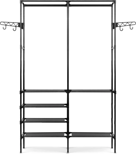 Bevar overblikket i din garderobe med den rummelige Massido-organisator. To ophængsstænger giver masser af plads til skjorter, frakker og kjoler, mens seks solide hylder bærer sammenlagt tøj, kasser og sko. Sidekroge er ideelle til tasker, huer eller håndklæder.