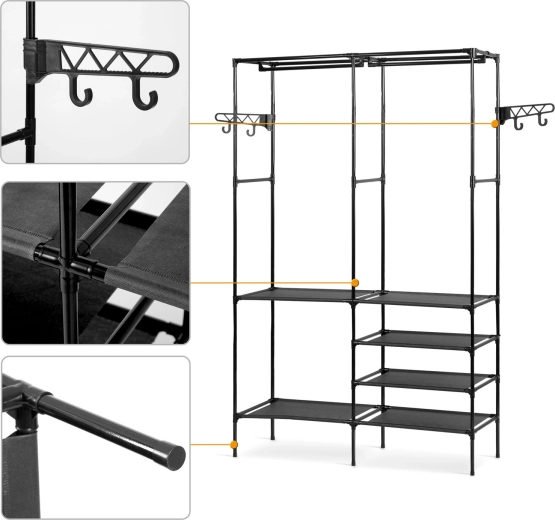 Rammen med PP-samlestykker er designet til lang holdbarhed og nem vedligeholdelse. Den vandrette og lodrette inddeling gør det nemt at udnytte garderobepladsen smart og have alt lige ved hånden. Monteringen er hurtig og intuitiv uden komplicerede værktøjer.