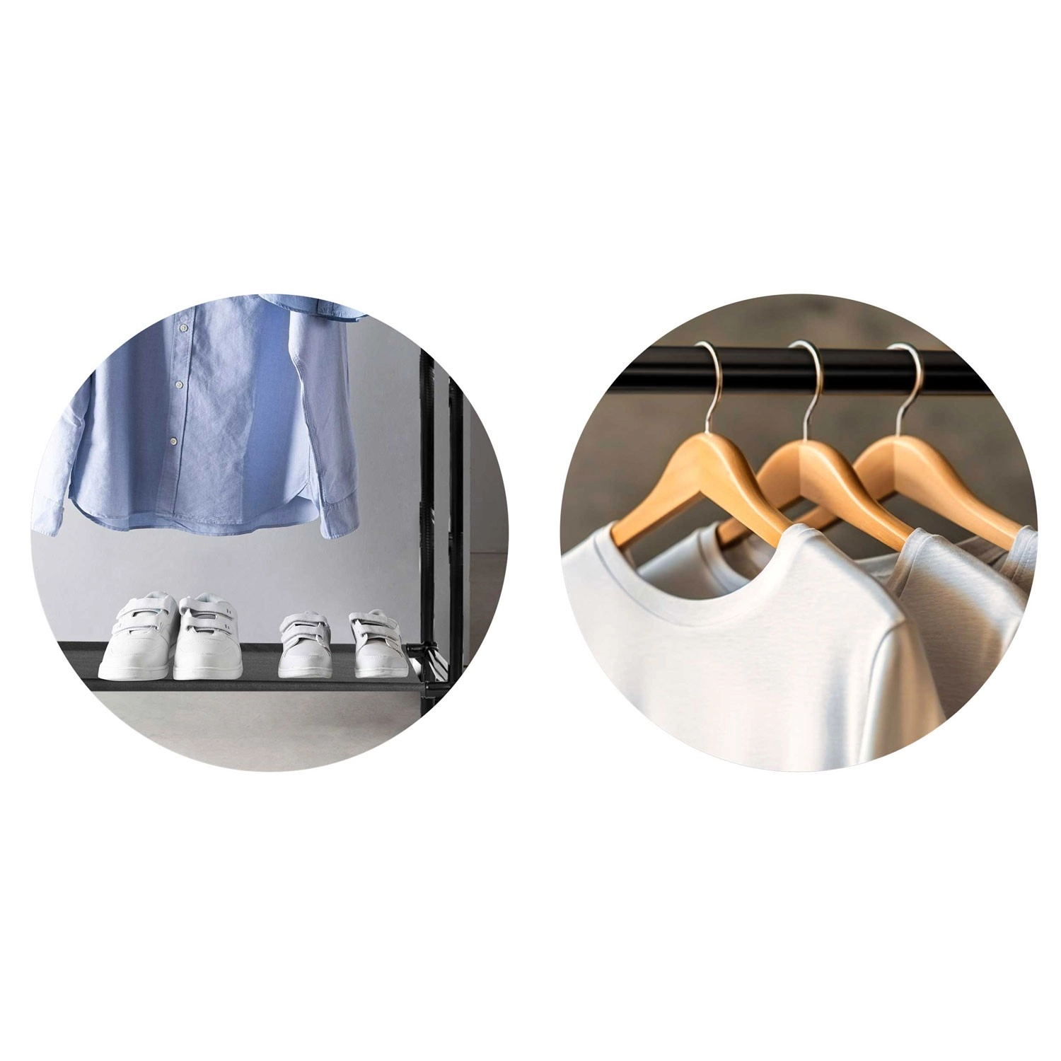Udnyt den smarte inddeling til både korte og lange beklædningsgenstande. To riller til bøjler og tre ophængsniveauer øger kapaciteten uden at spilde plads.