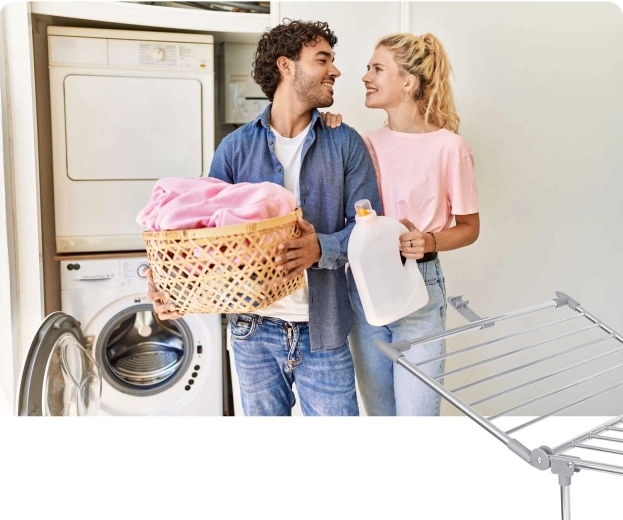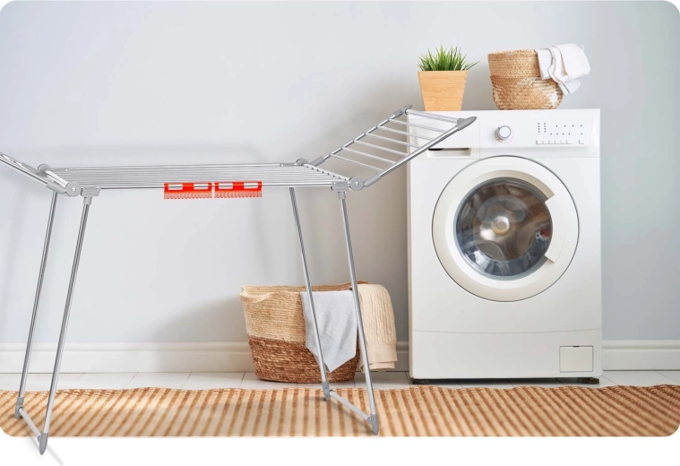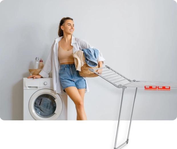 To udklappelige vinger og gennemtænkt placering af stængerne giver op til 19 meter tørreplads – ideel til familiens vask.