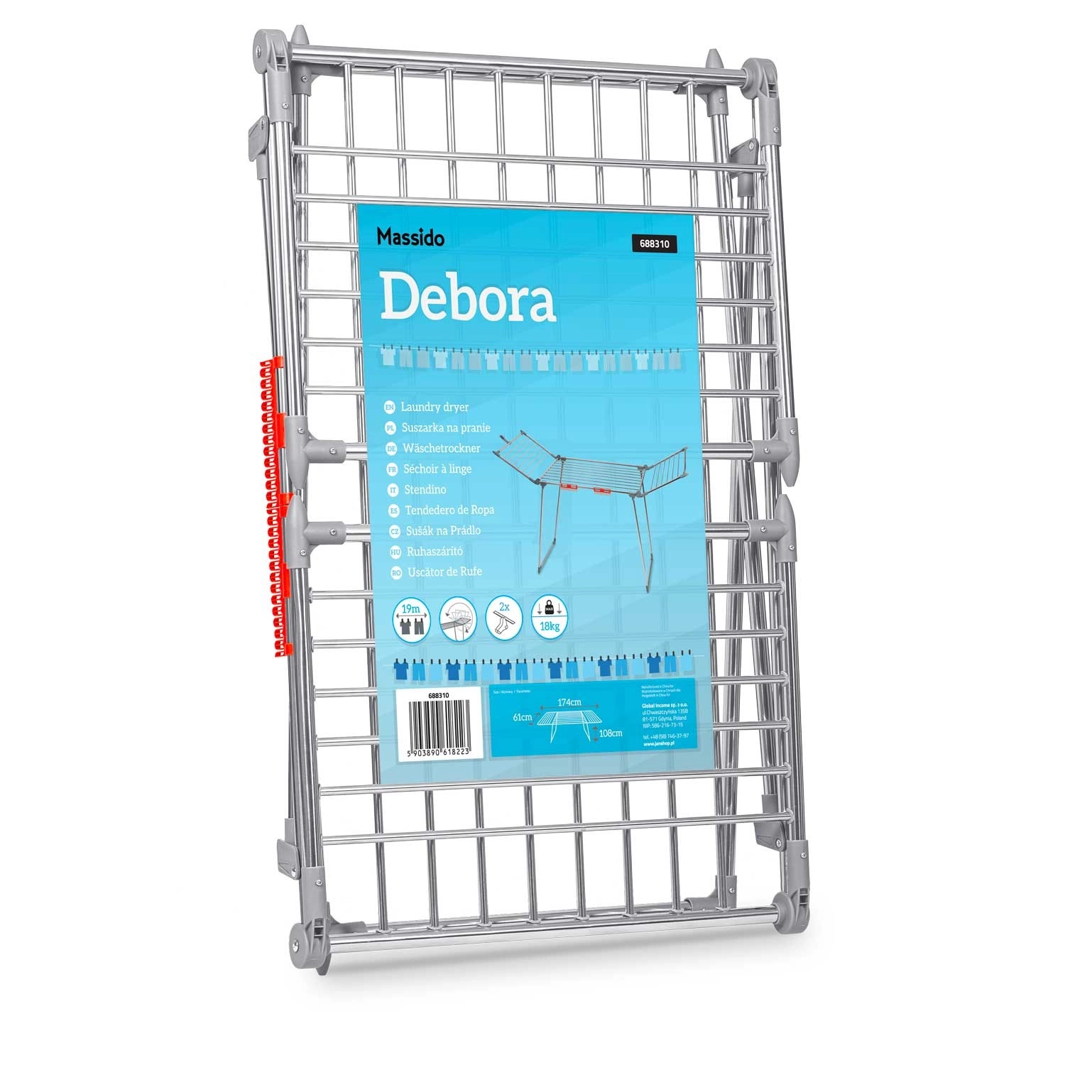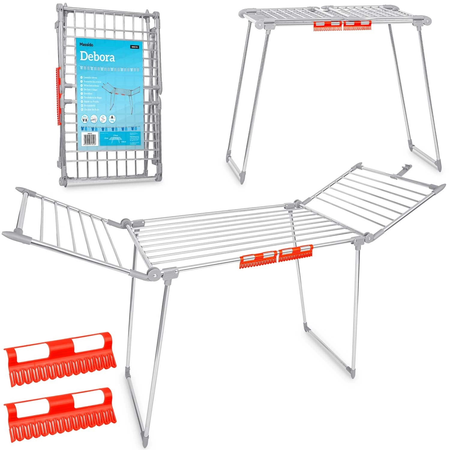 Massido Debora er et pålideligt tørrestativ til daglig brug, der kombinerer holdbarheden fra rustfrit stål med et moderne, praktisk design. De to udklappelige vinger giver fleksibel tørreplads, mens de gennemtænkte afstande mellem stængerne fremmer hurtig fordampning og jævn tørring uden behov for tidskrævende strygning.